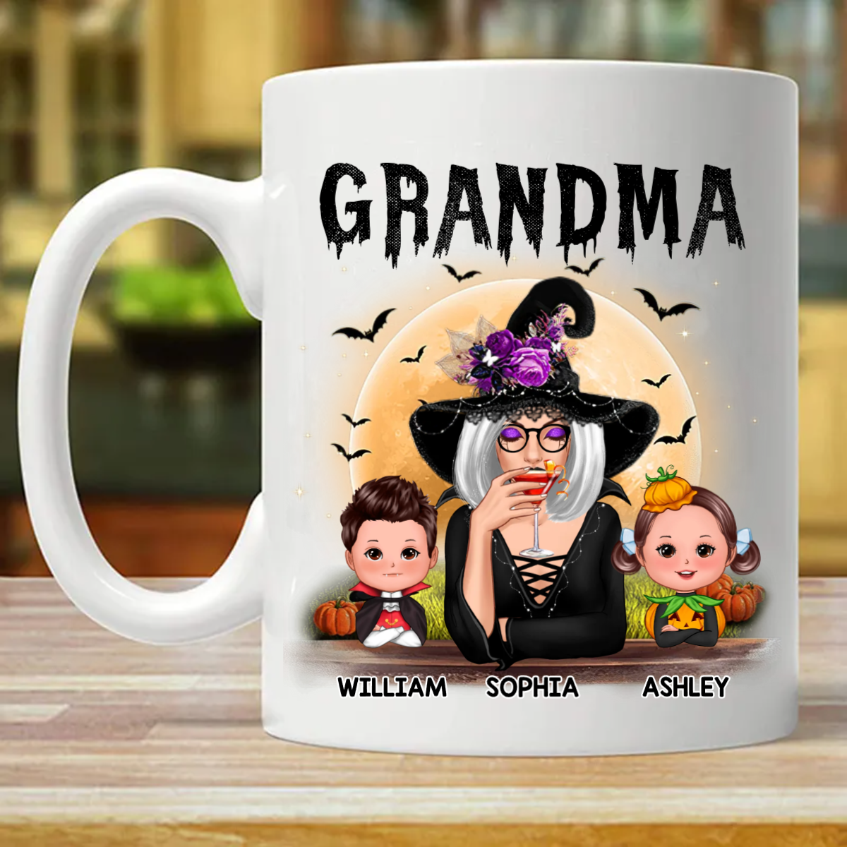 Grandma Mom Witch With GrandKids Halloween Personalized Custom Mug (Double-sided Printing)