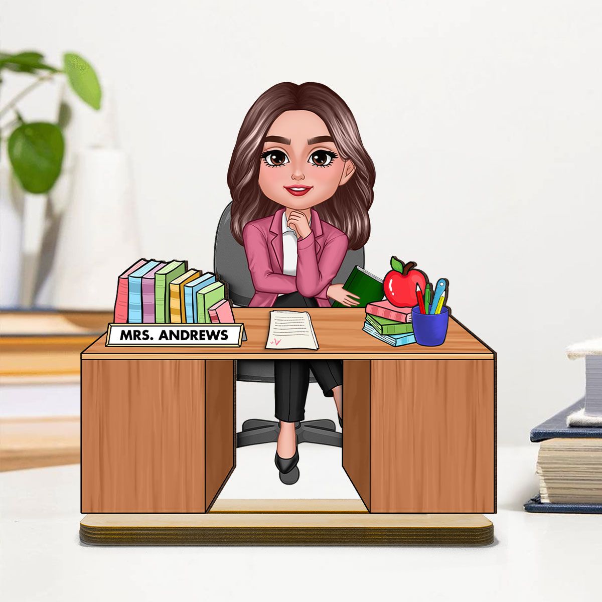 Teacher Sitting At Desk Personalized 2-Layer Standing Wooden Plaque, Back To School Gift