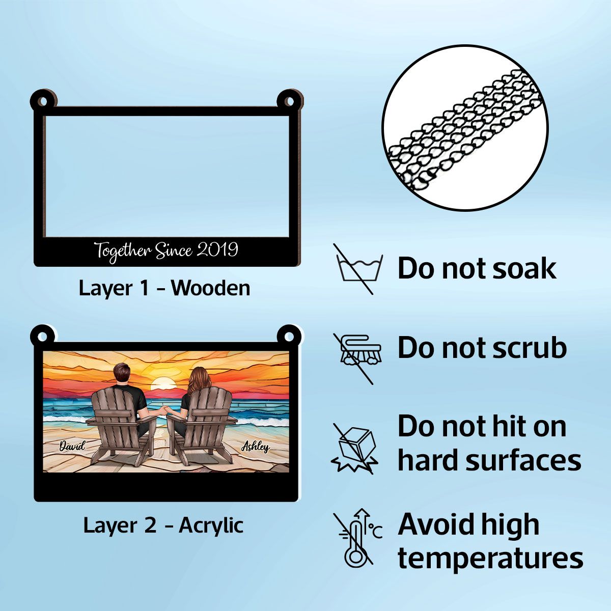 Couple Sitting Back View At Beach Landscape Stained Glass Personalized Suncatcher