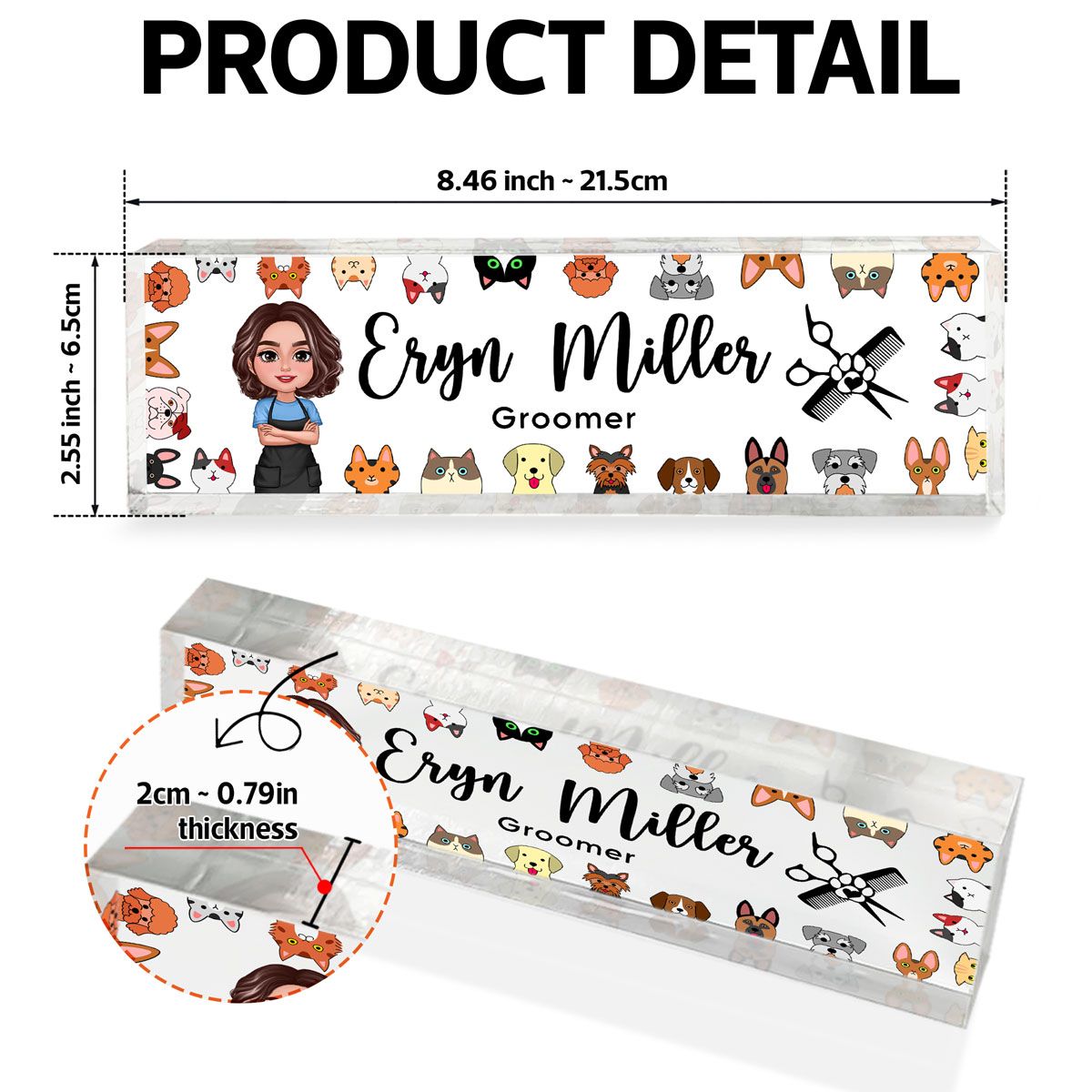 Dog Cat Groomer Personalized Acrylic Desk Name Plate, Office Decor