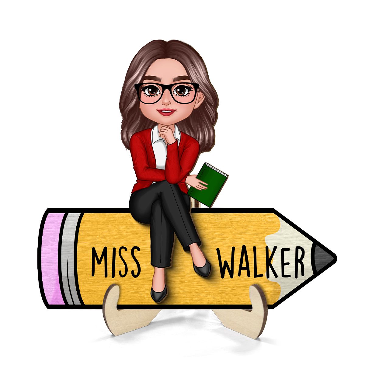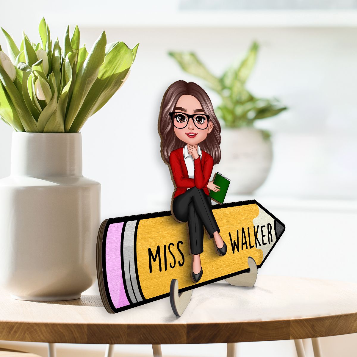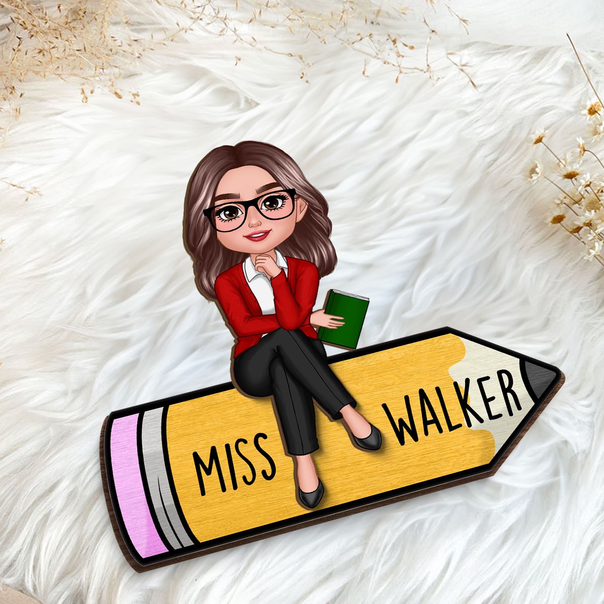 Doll Teacher Sitting On Pencil Personalized 2-Layer Wooden Plaque, Back To School Gift For Teacher, Office Decor