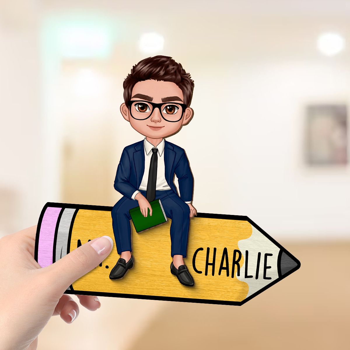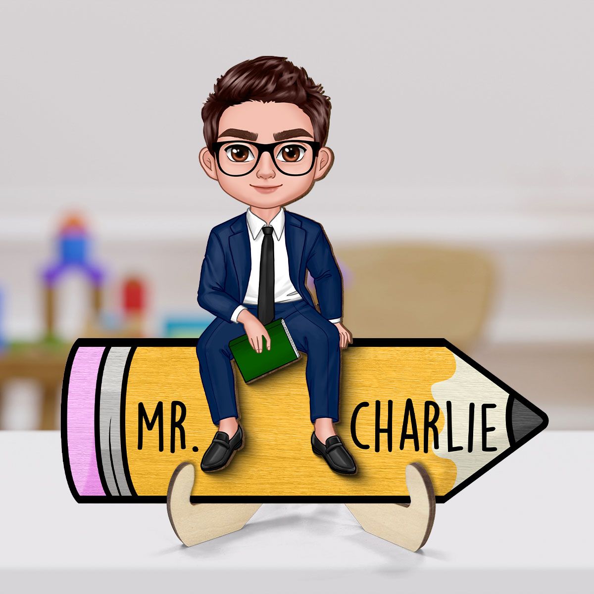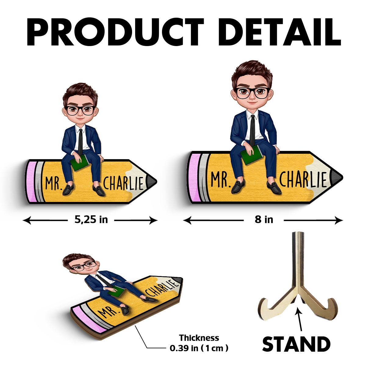 Doll Teacher Sitting On Pencil Personalized 2-Layer Wooden Plaque, Back To School Gift For Teacher, Office Decor