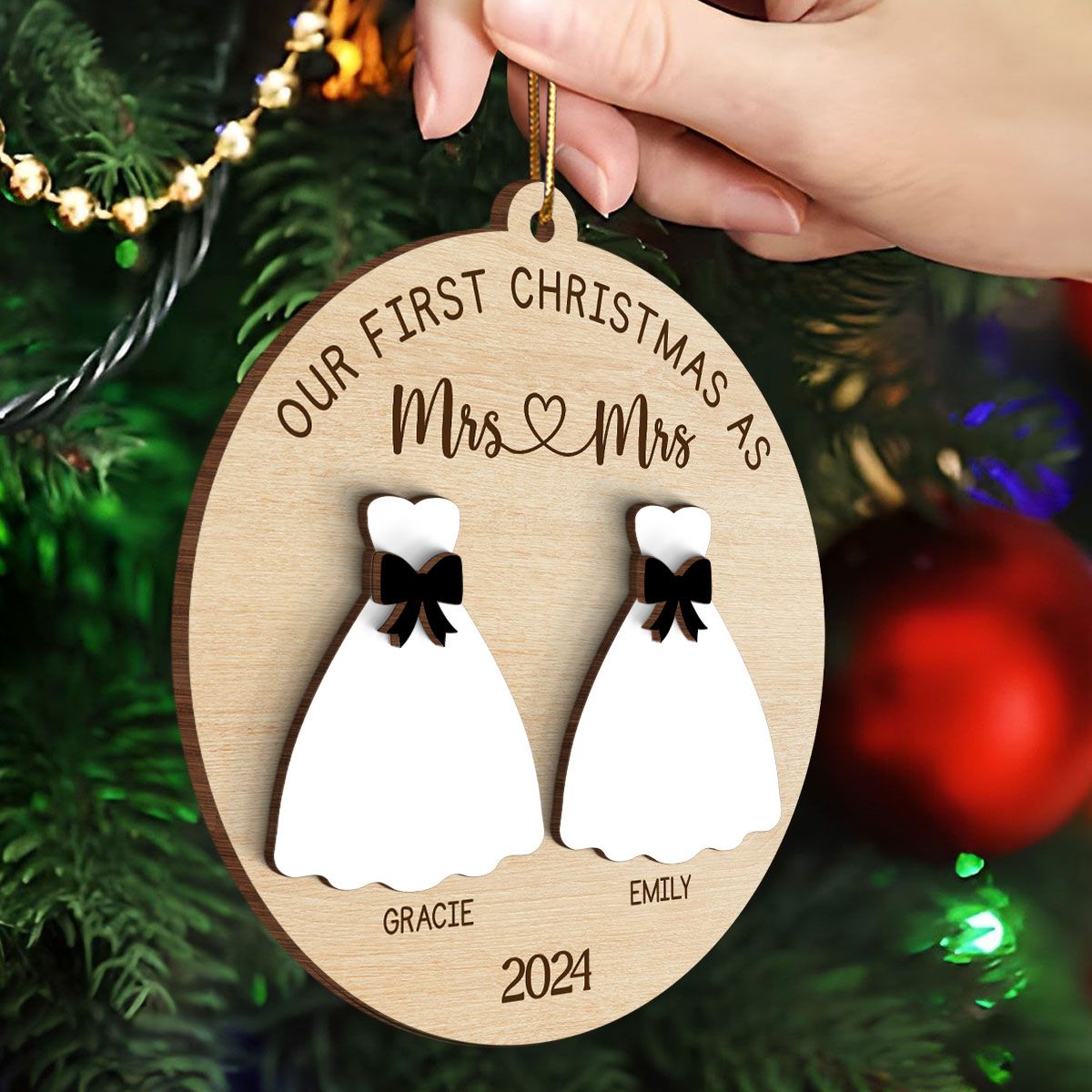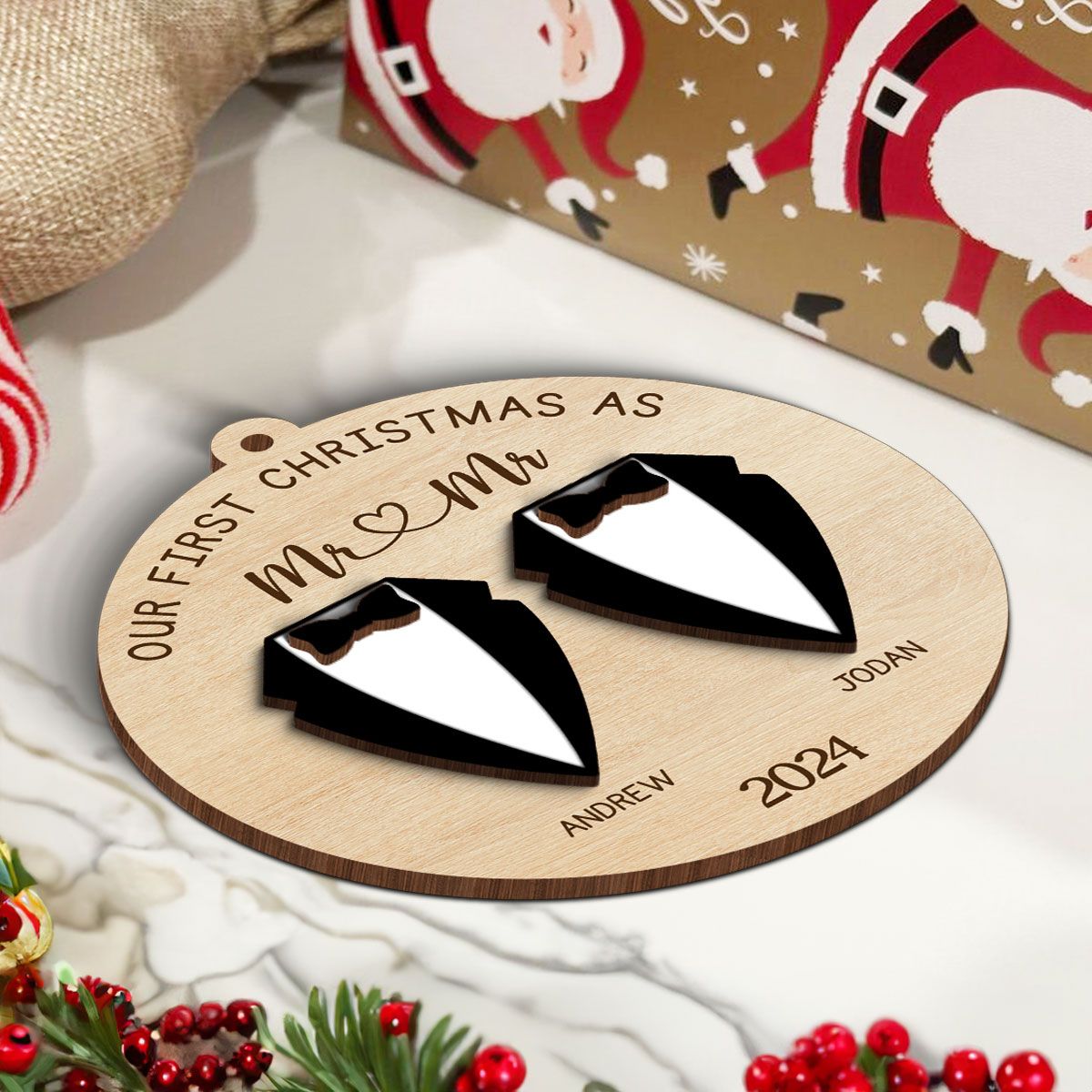 First Christmas Wedding Mr Mrs Personalized 3-Layer Wooden Ornament, Newlywed Gift Christmas Gift