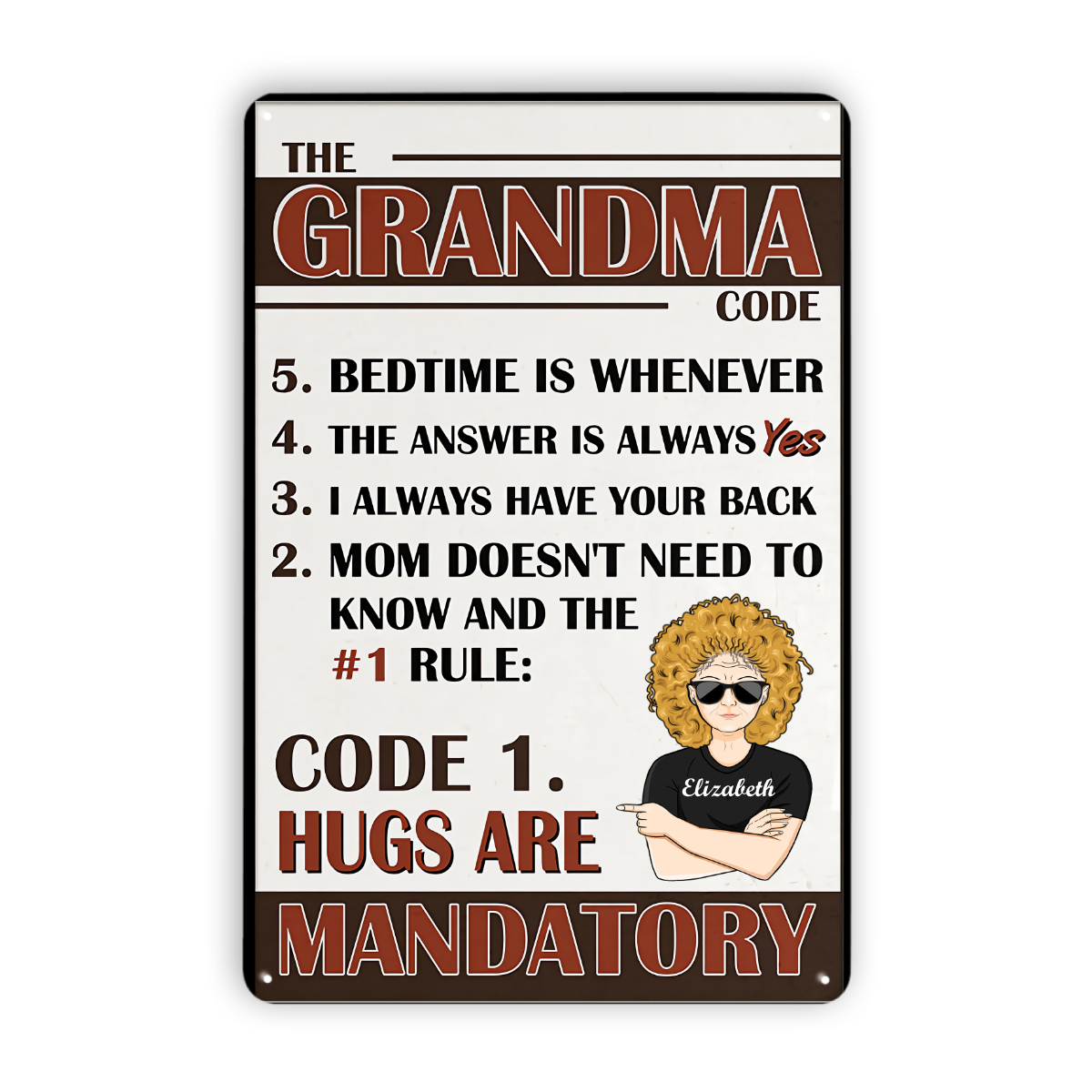 Grandma Code Hugs Are Mandatory - Mother Gift - Personalized Custom Metal Signs