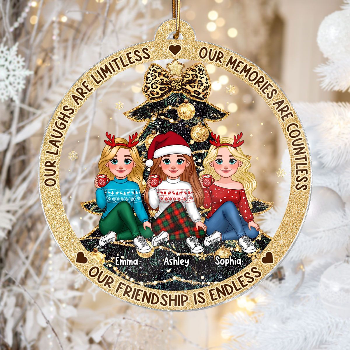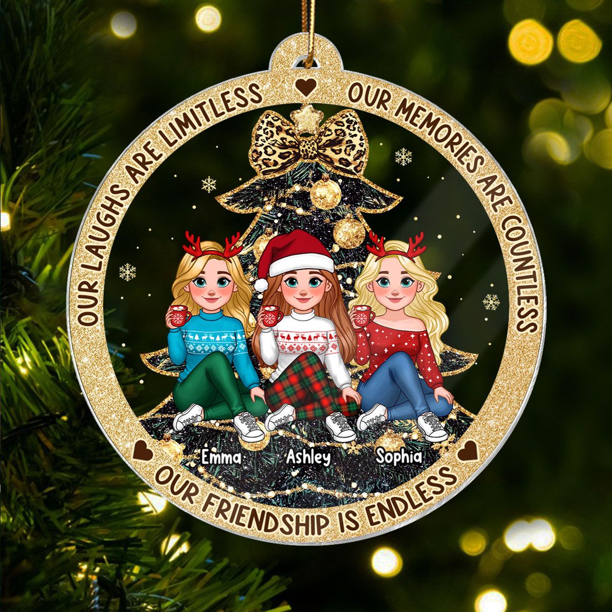 Green Christmas Tree Animated Besties Personalized Acrylic Ornament, Christmas Gift For Best Friends