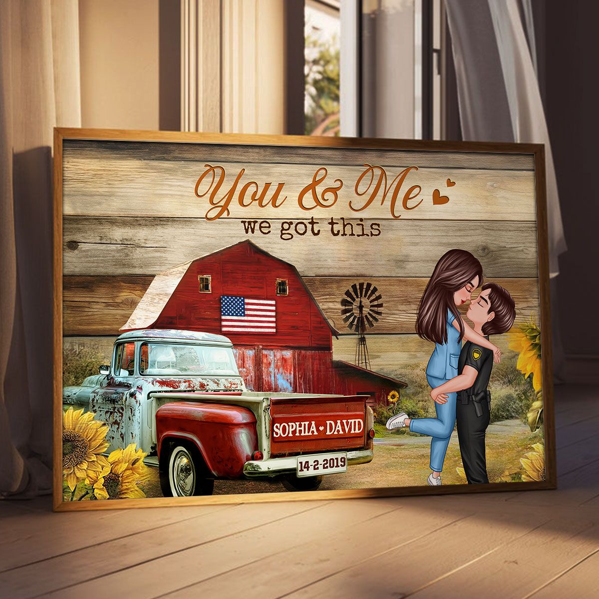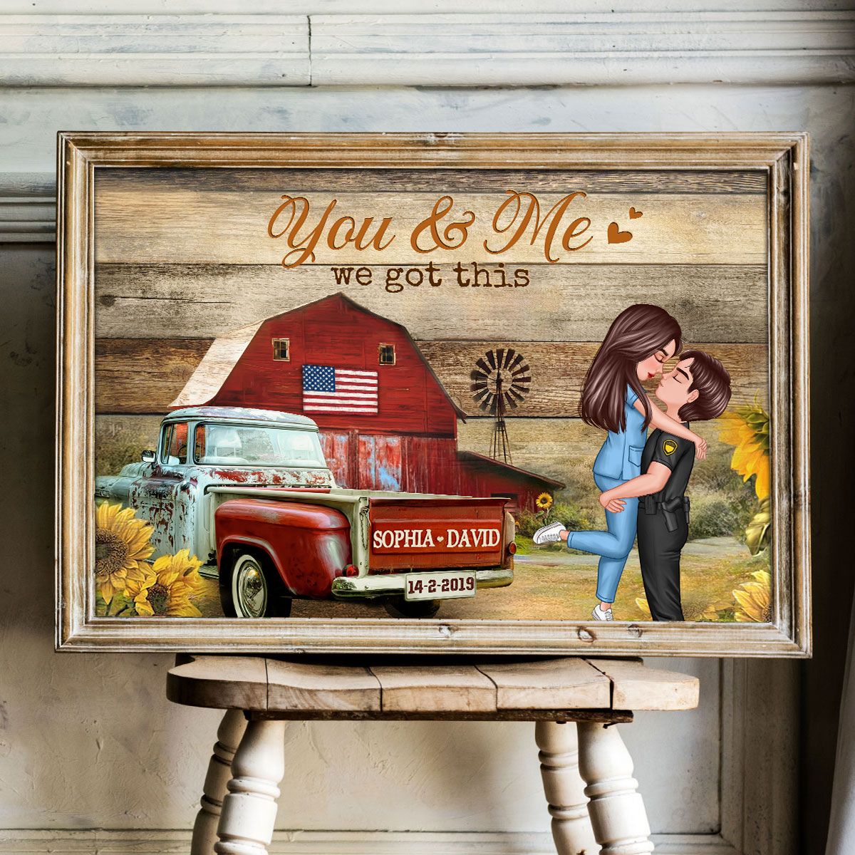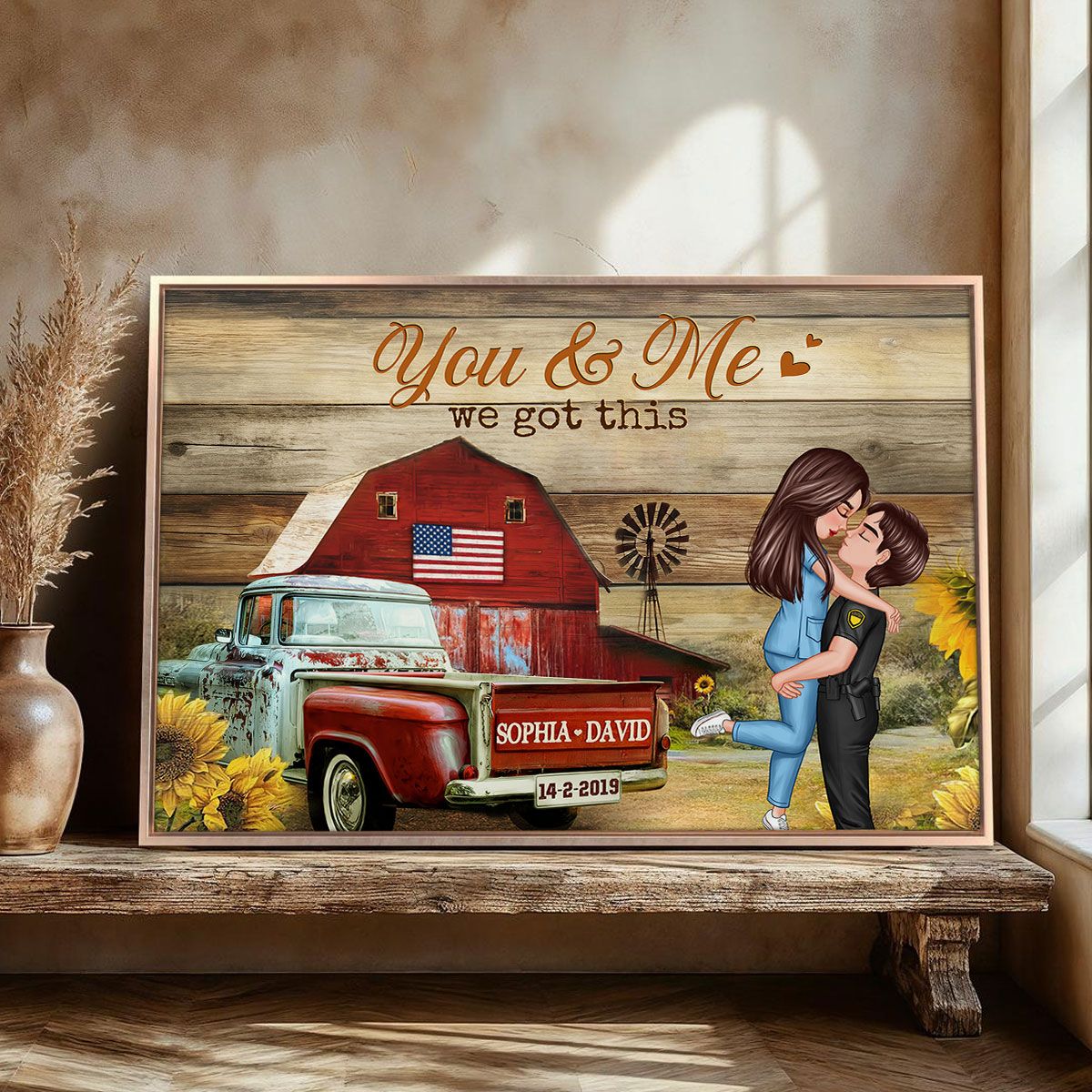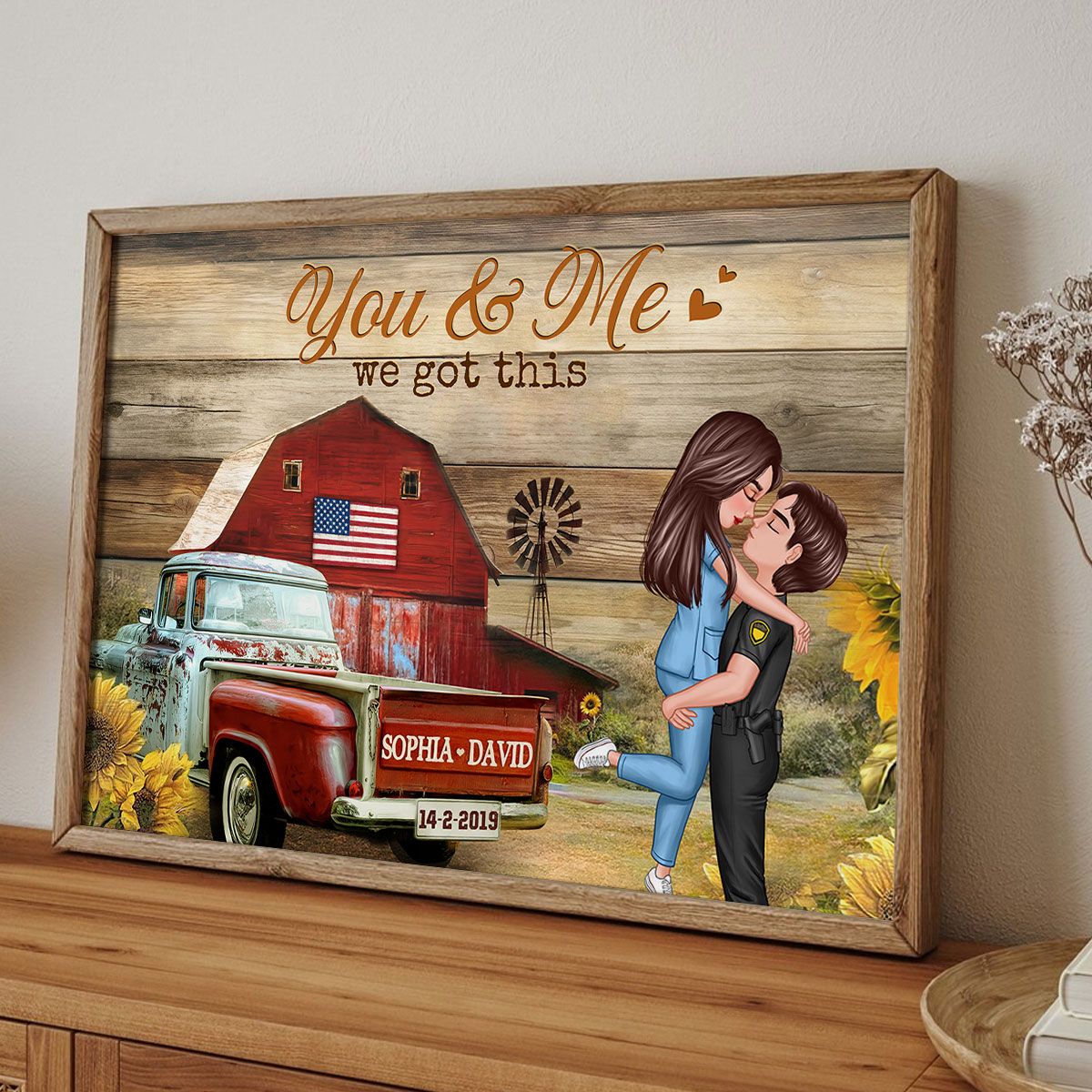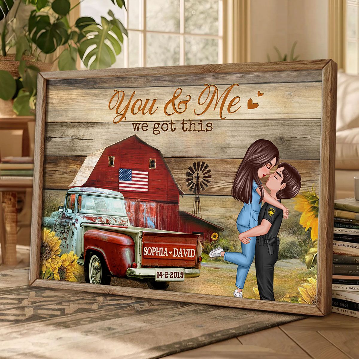 Hero Couple Vintage Truck Farmhouse Personalized Poster, Anniversary Valentine's Day Gift For Him, Her, Husband, Wife