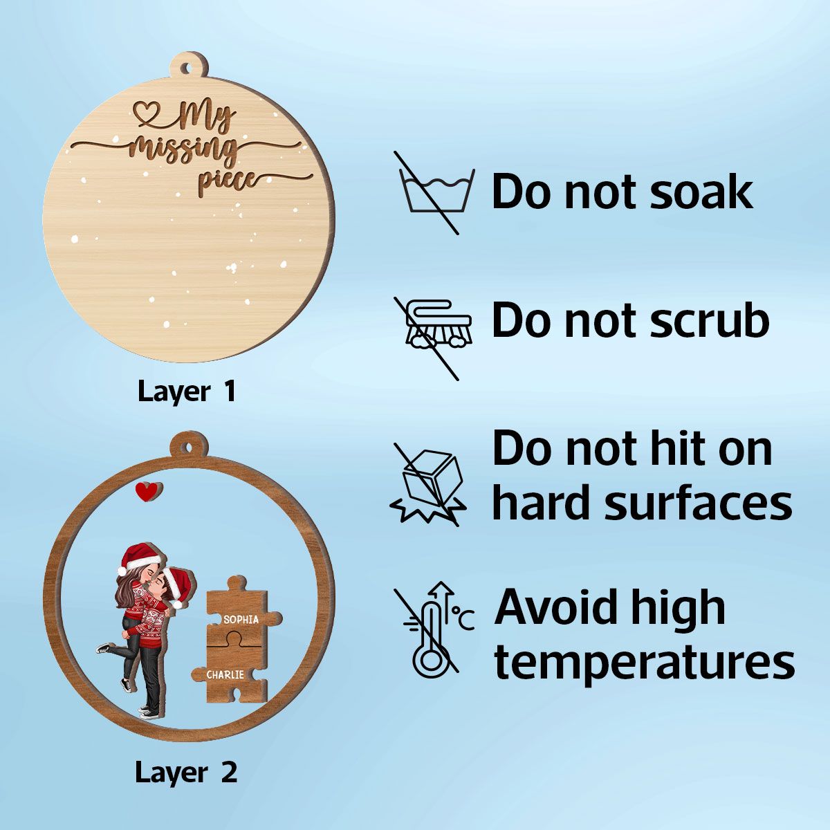 My Missing Piece Couple Hugging Kissing Christmas Personalized 2-Layer Wooden Ornament