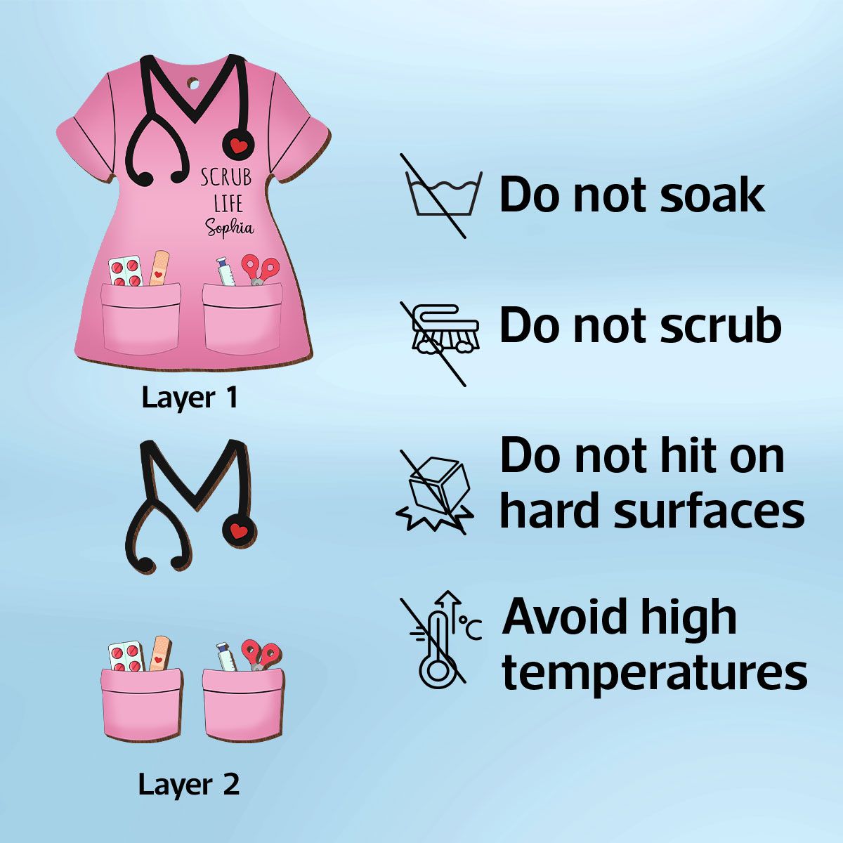 Nurse Scrub Life Personalized 2-Layer Wooden Ornament, Medical Christmas Ornament Gift For Nurses