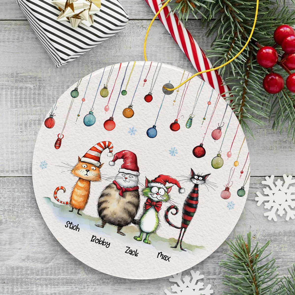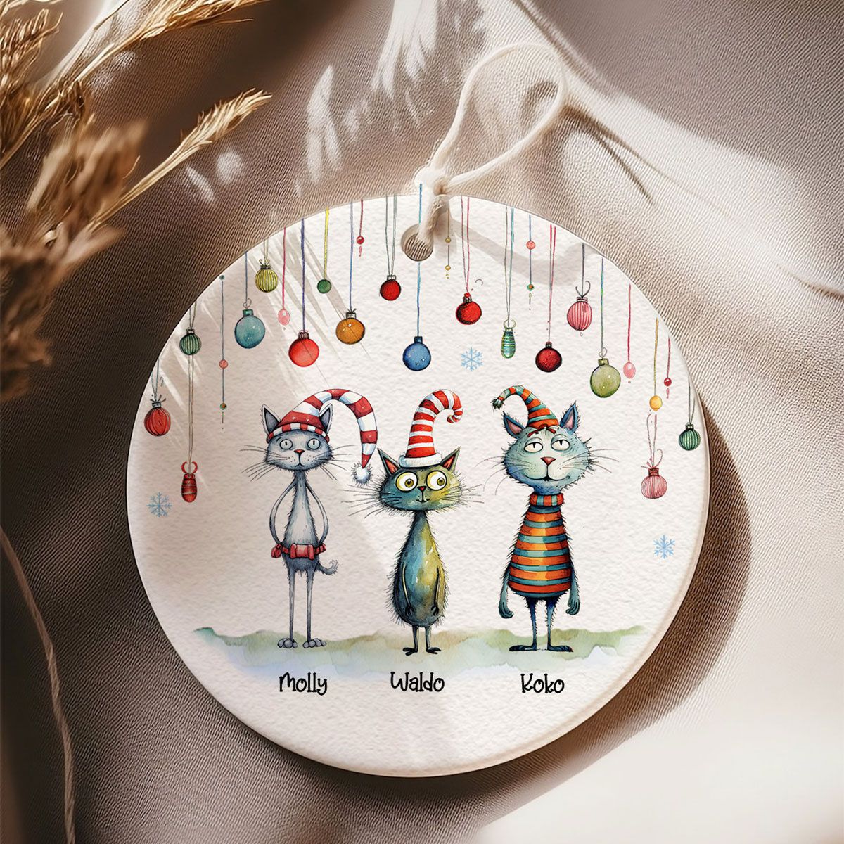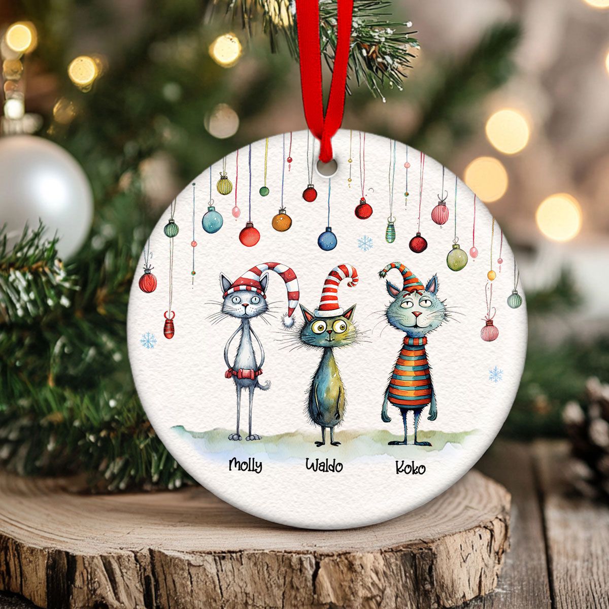 Quirky Christmas Cat Whimsical Funny Silly Holiday Cats Personalized Circle Ceramic Ornament