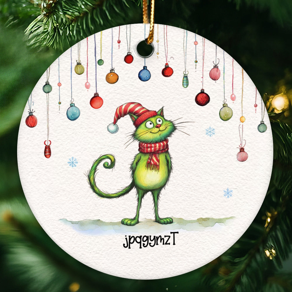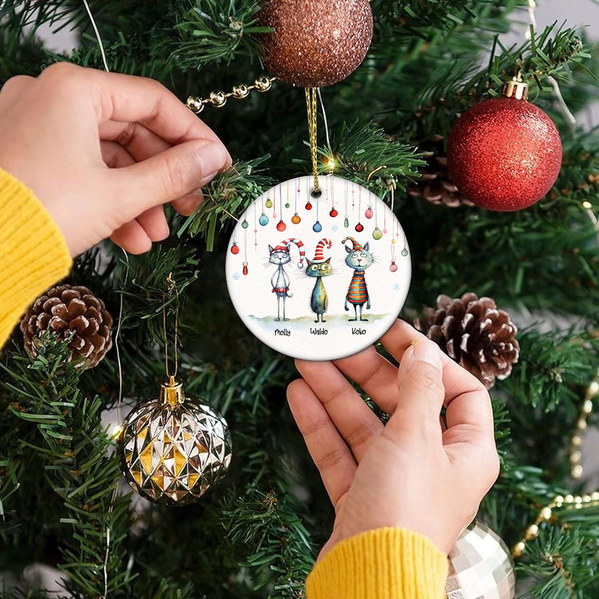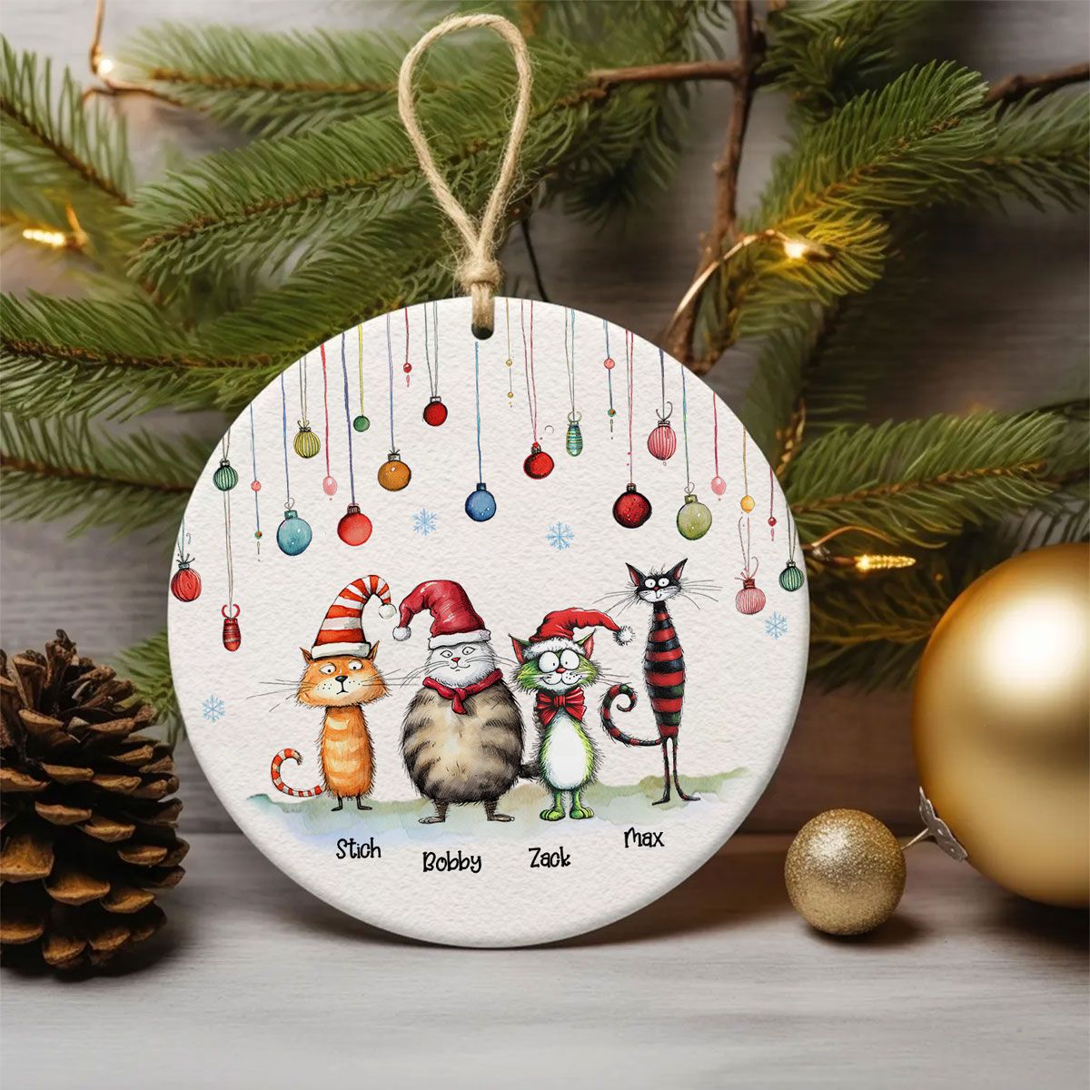 Quirky Christmas Cat Whimsical Funny Silly Holiday Cats Personalized Circle Ceramic Ornament