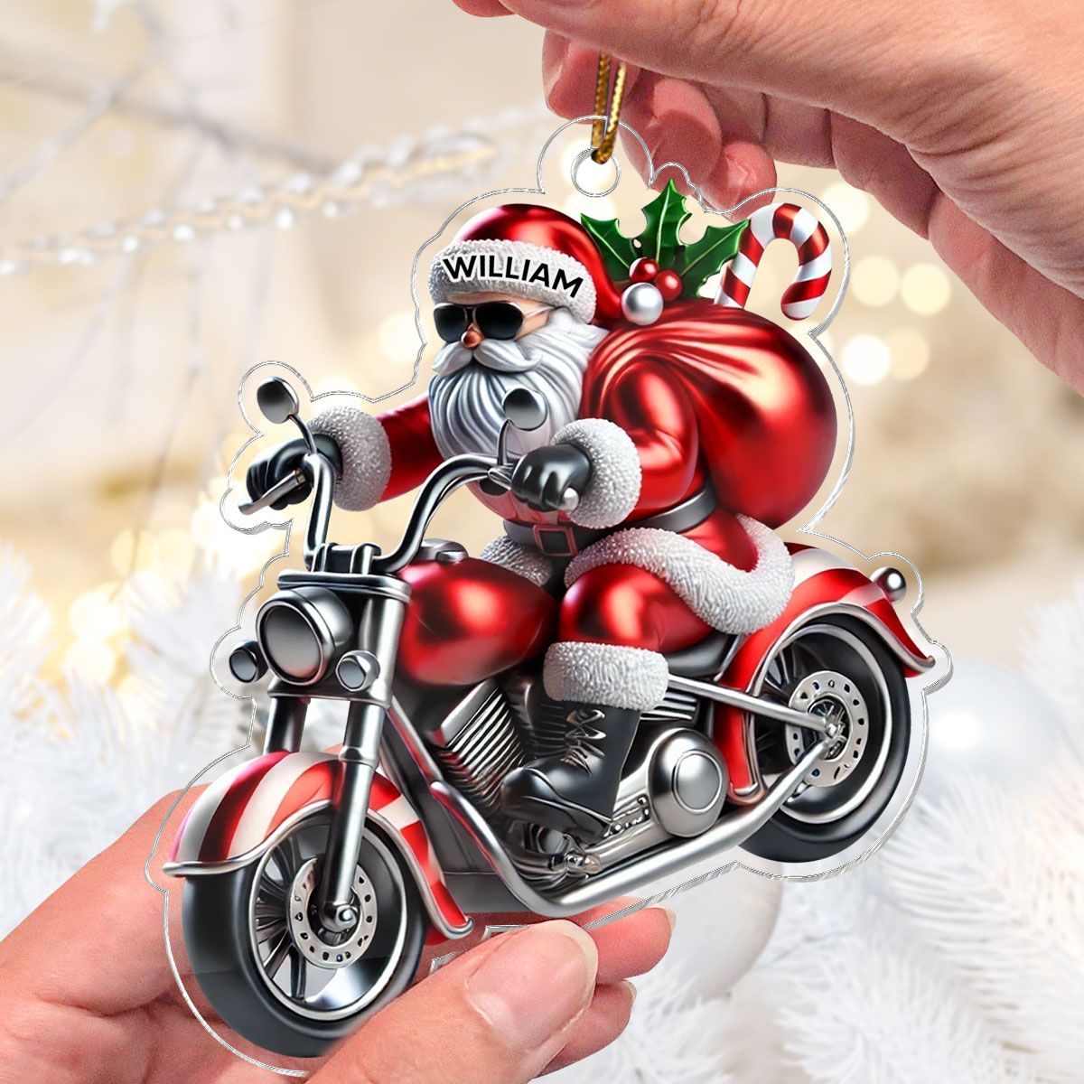 Santa Claus Riding Motorbike Christmas Personalized Acrylic Ornament, Motorcycle, Motocross, Bikers Christmas Gift