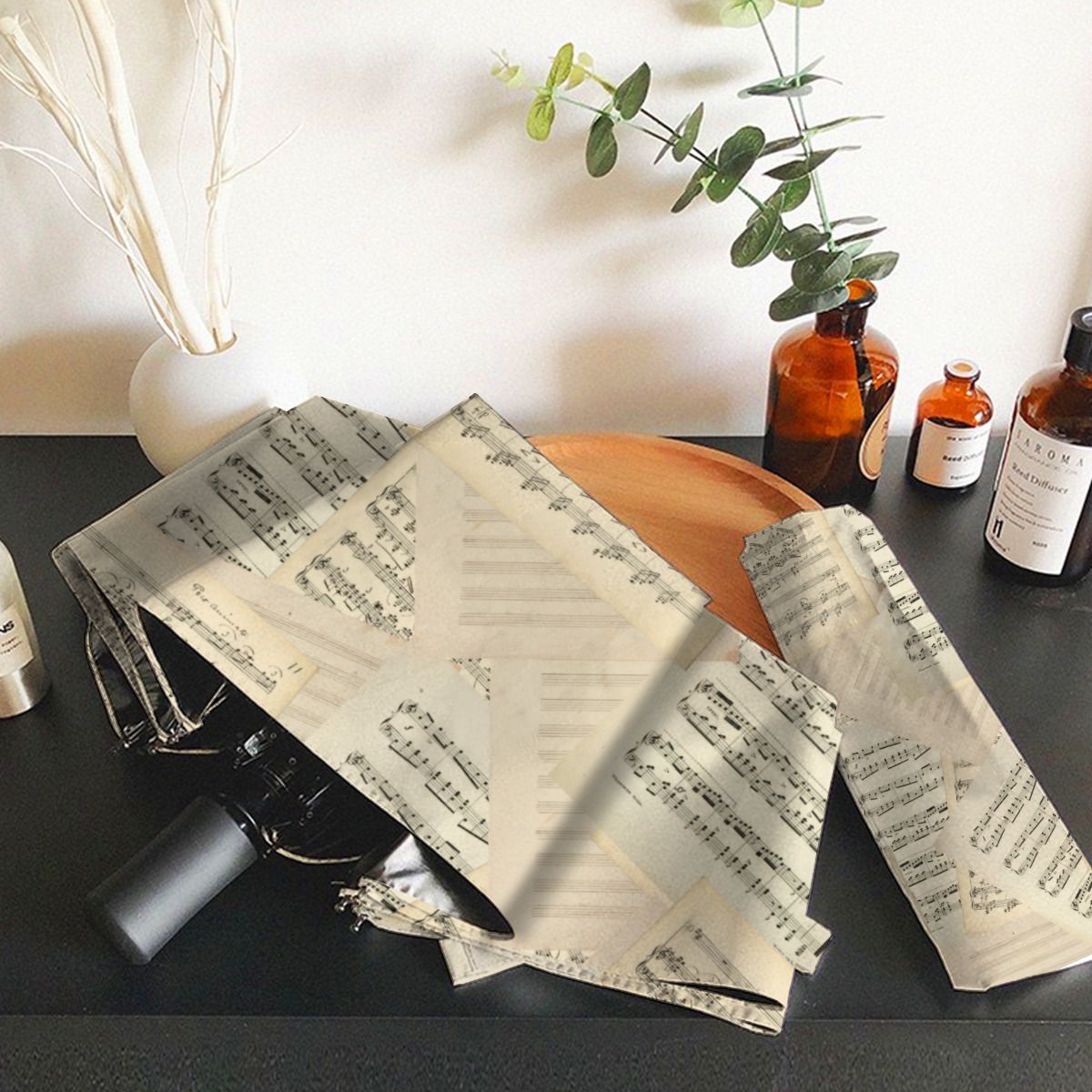 Vintage Music Composition Collage Christmas Brushed Polyester Umbrella No.UQWD97