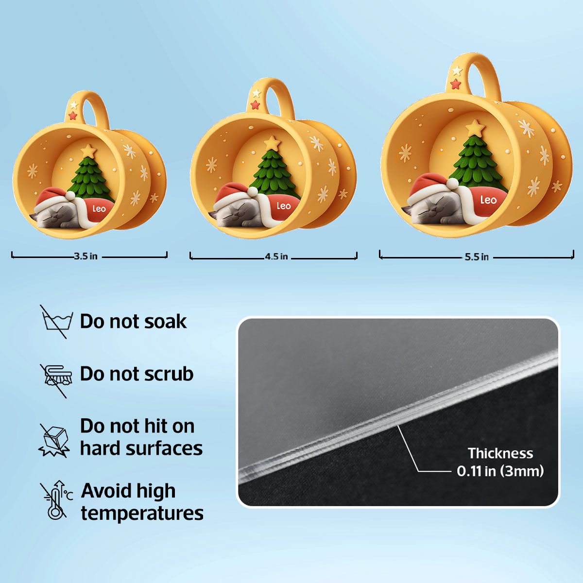 - Sizes: 3 options available: 3.5", 4.5", 5.5" (depict the longest dimension of the ornament, please allow up to 5mm differences due to manual measurement)