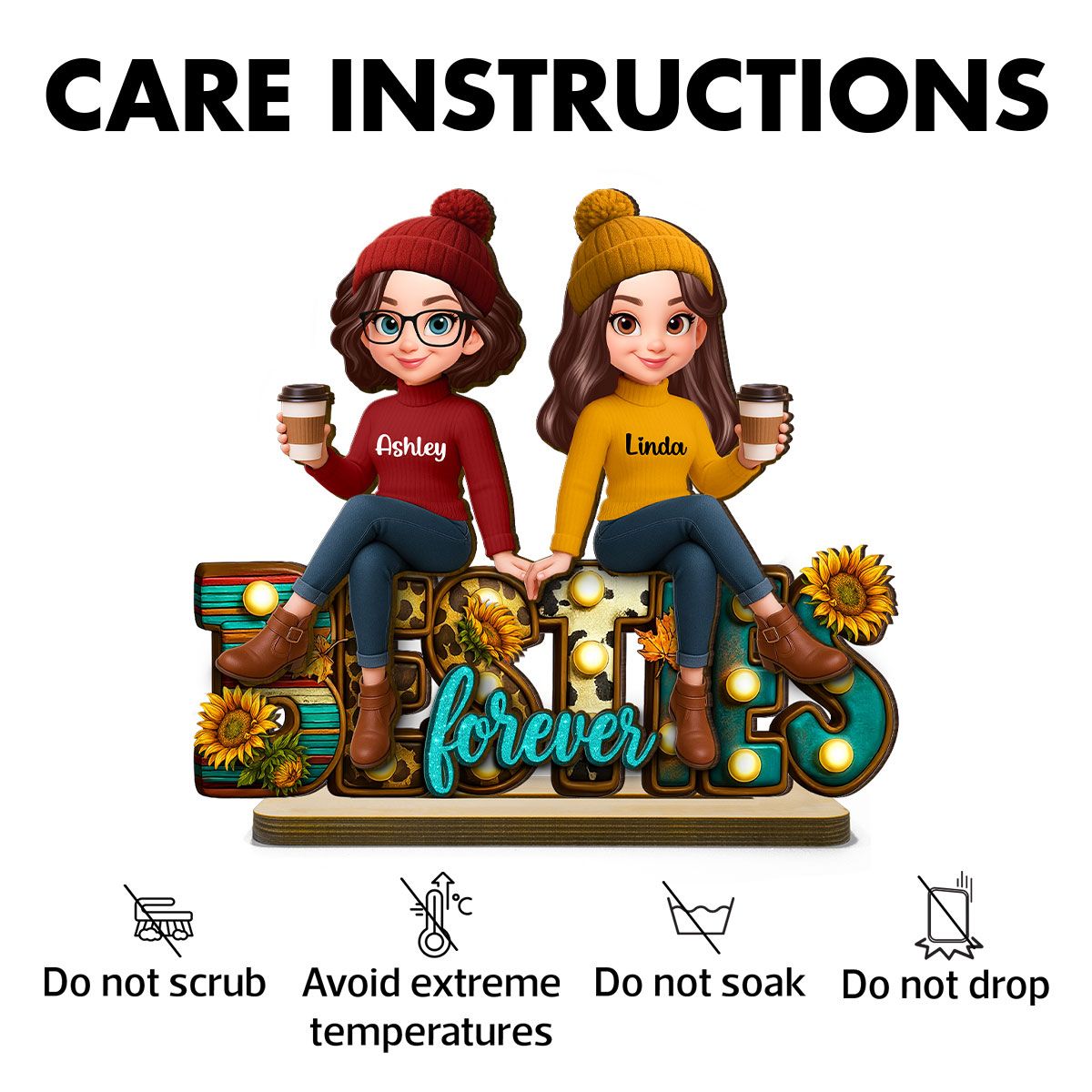 Western Fall Vibe Besties Sitting Personalized Standing Wooden Plaque, Fall Gift for Best Friends