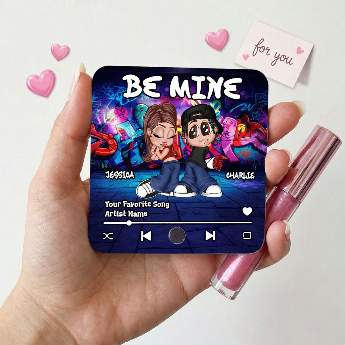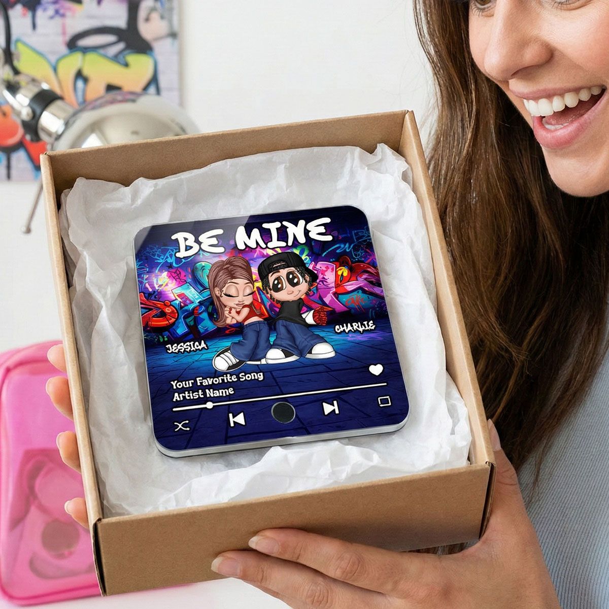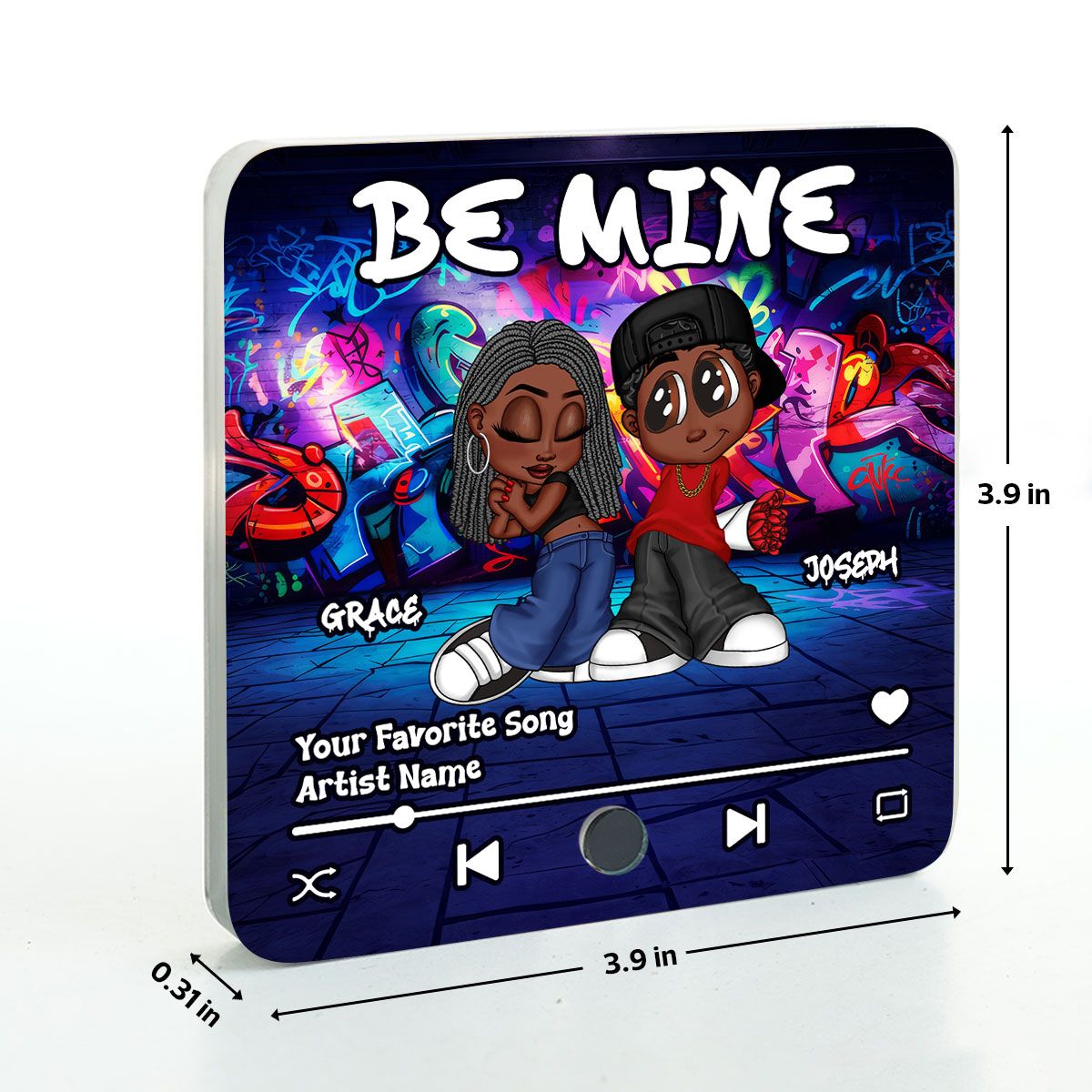 Y2K Couple Graffiti Background - Personalized Music Fridge Magnet - Valentine's Day Gift For Him, Gift For Her