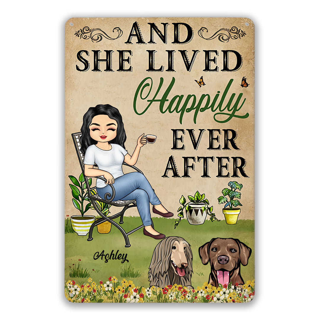 And She Lived Happily Ever After Gardening Dog Lovers - Personalized Custom Metal Signs