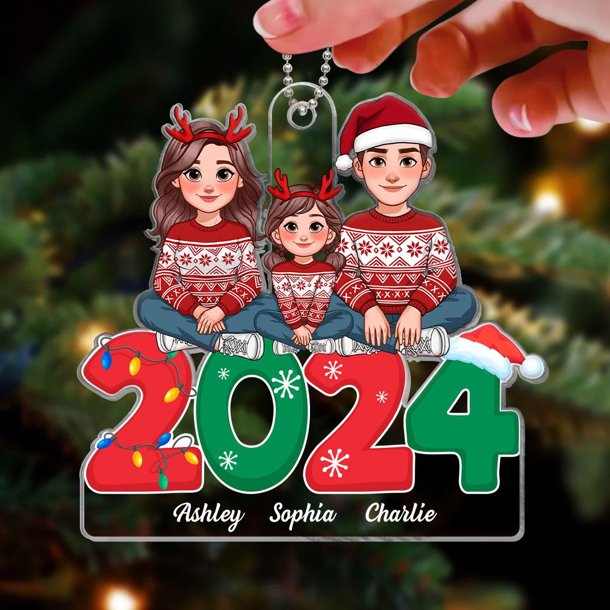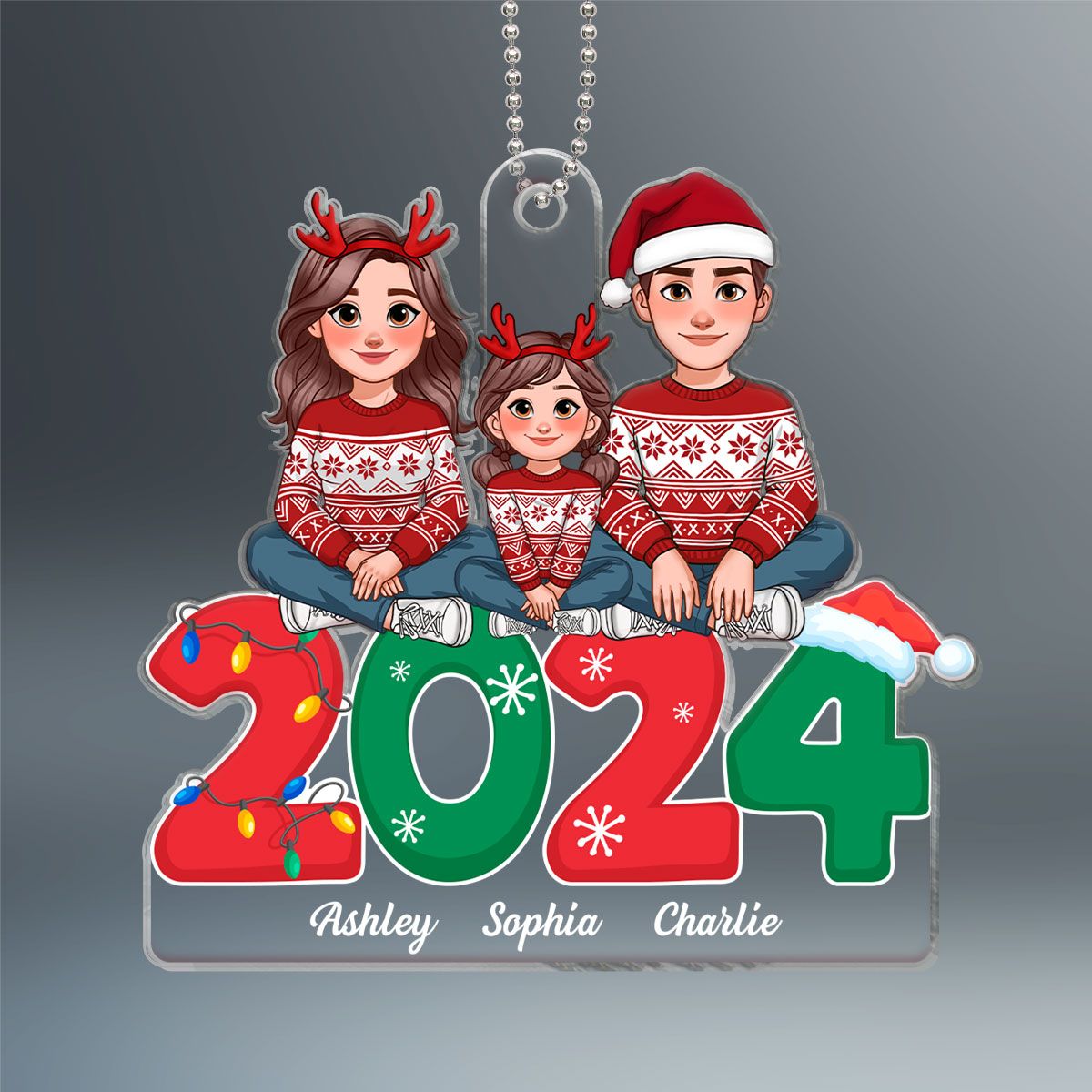 Animated Family Sitting On 2024 Christmas Personalized Acrylic Ornament