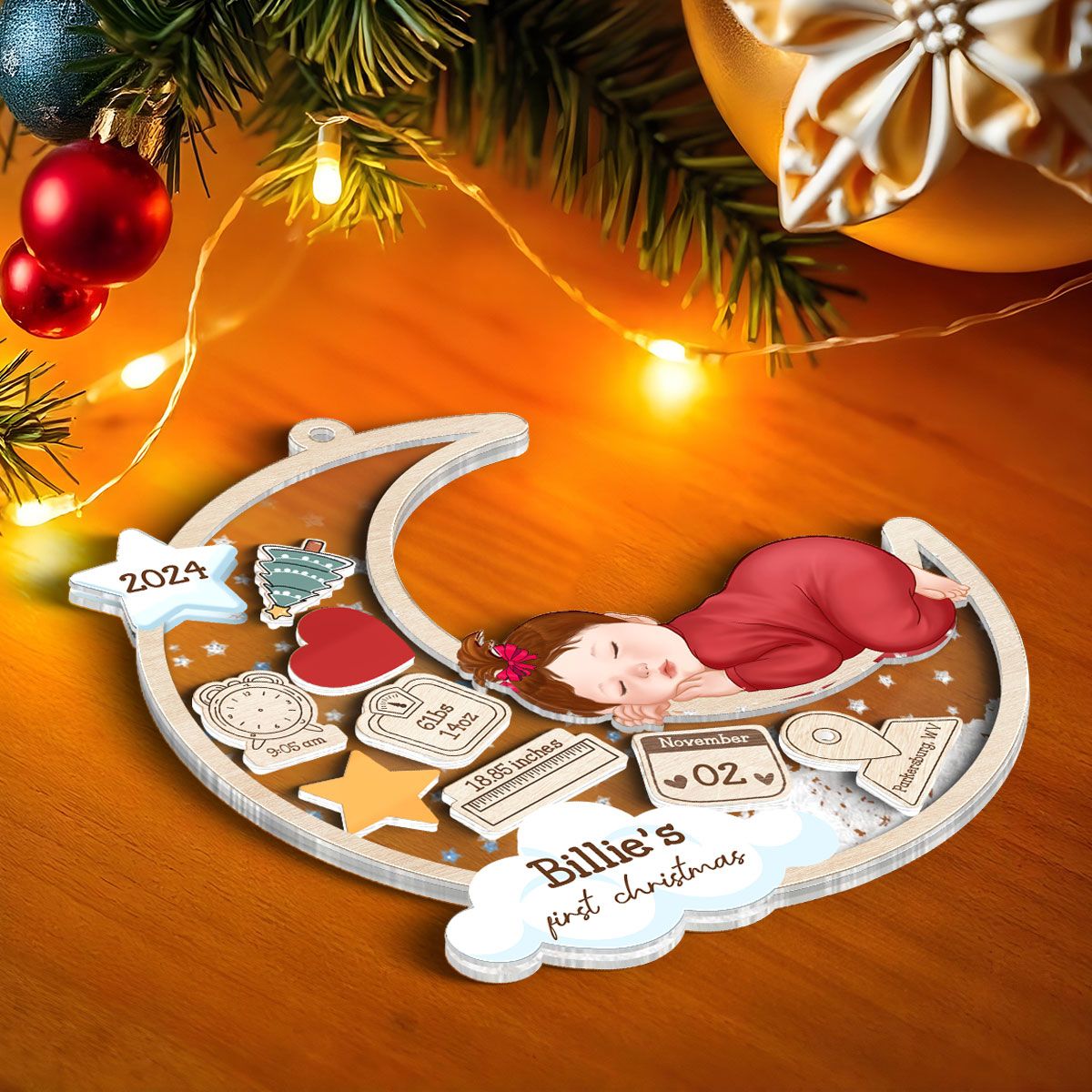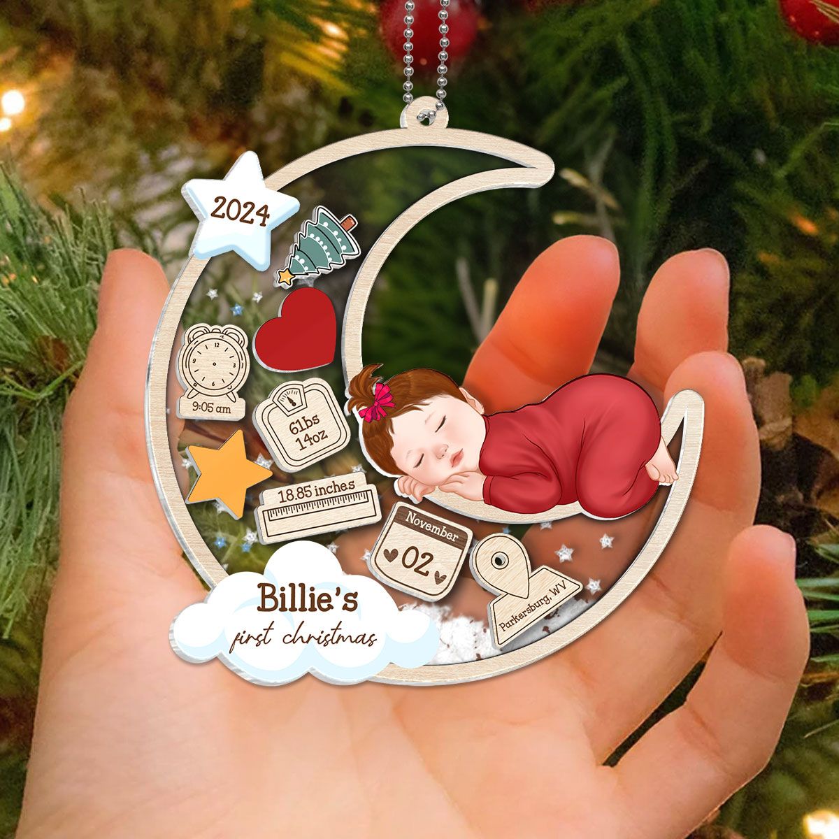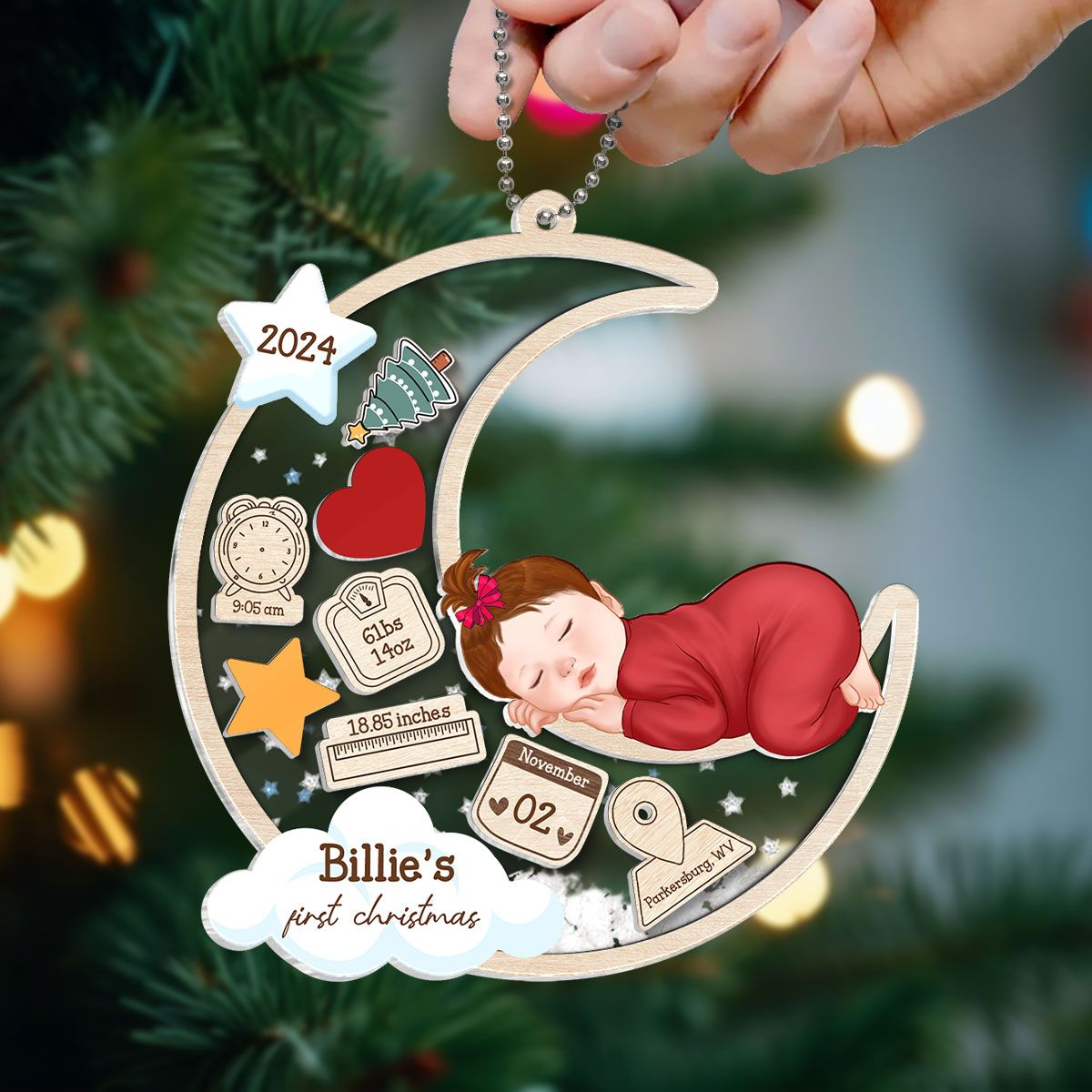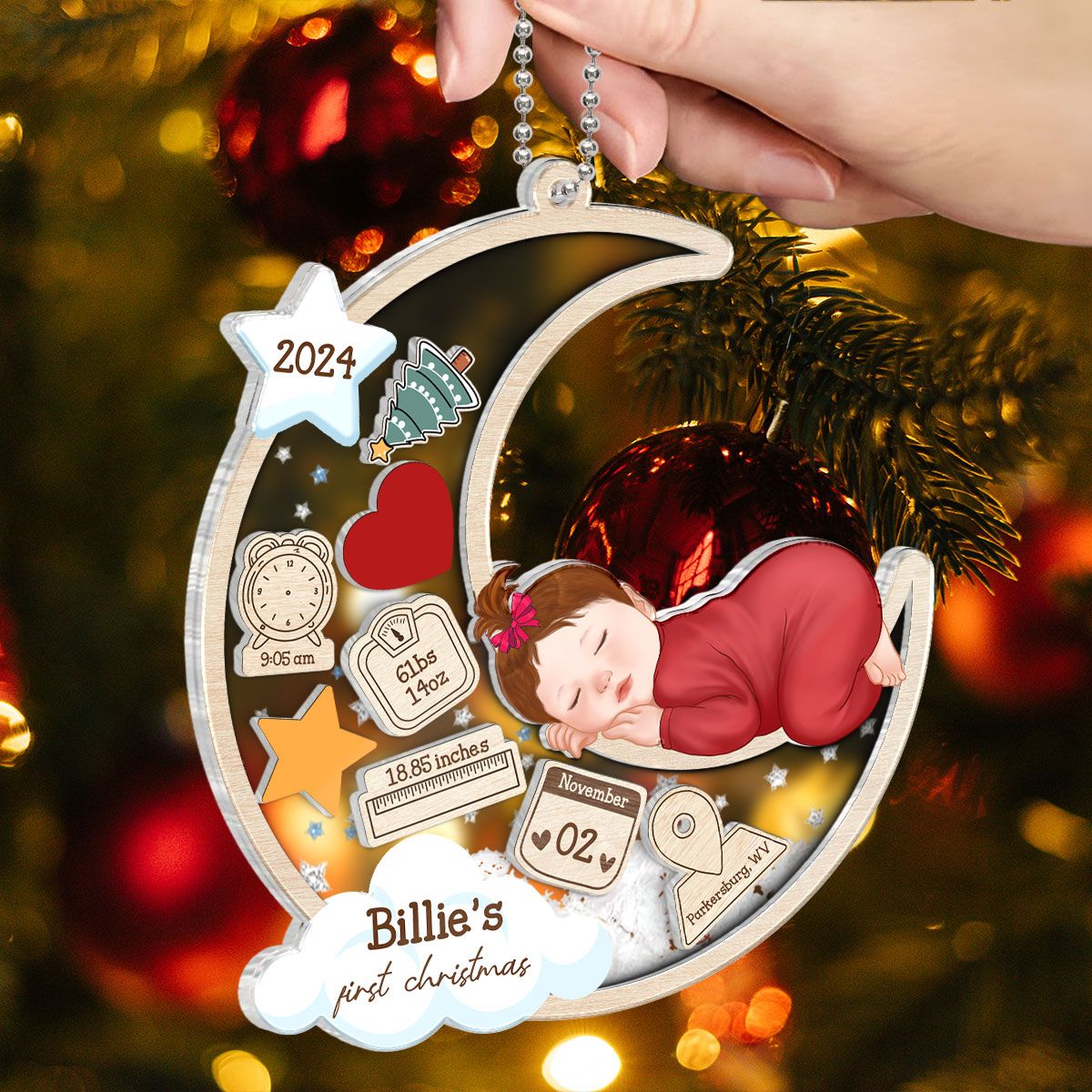 Baby Sleeping On Moon First Christmas Personalized Acylic Ornament, Custom Newborn Gift