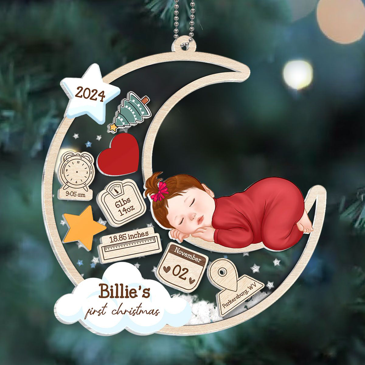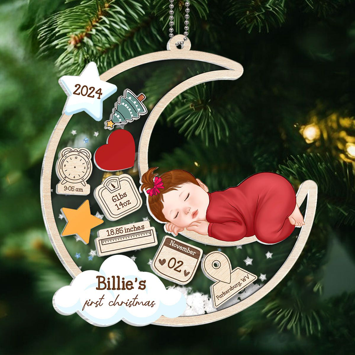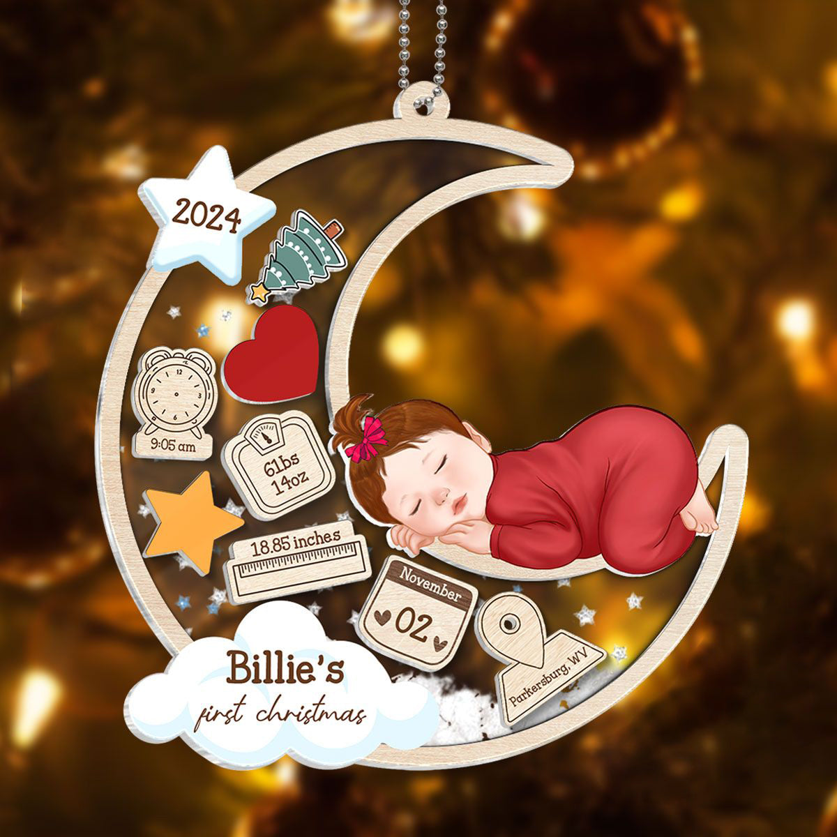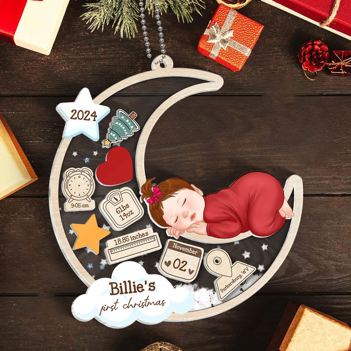 Baby Sleeping On Moon First Christmas Personalized Acylic Ornament, Custom Newborn Gift