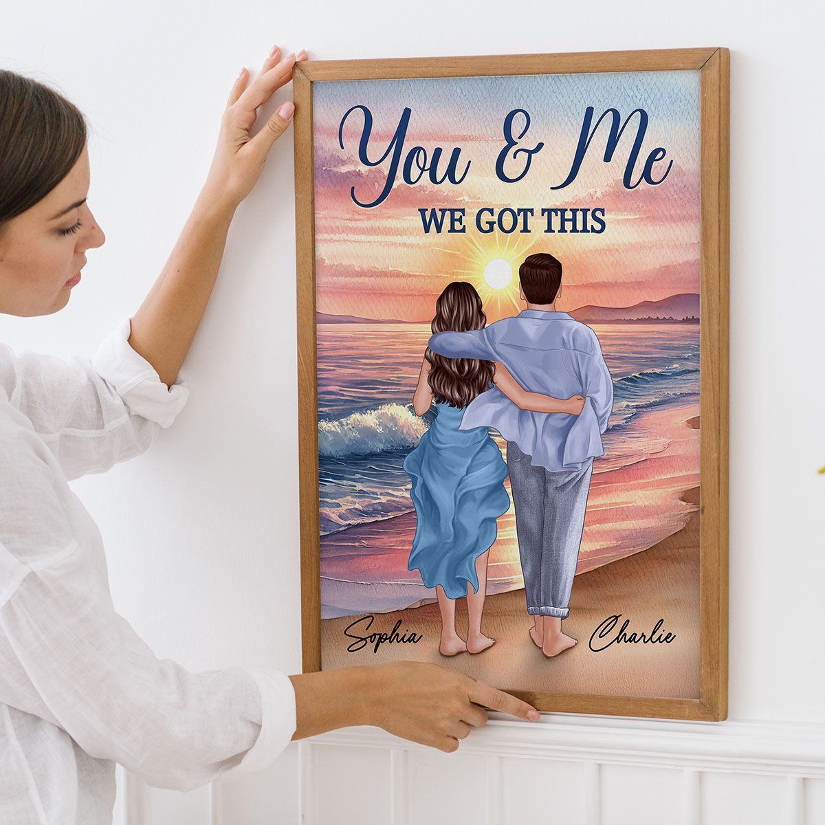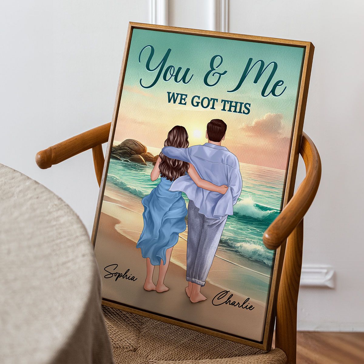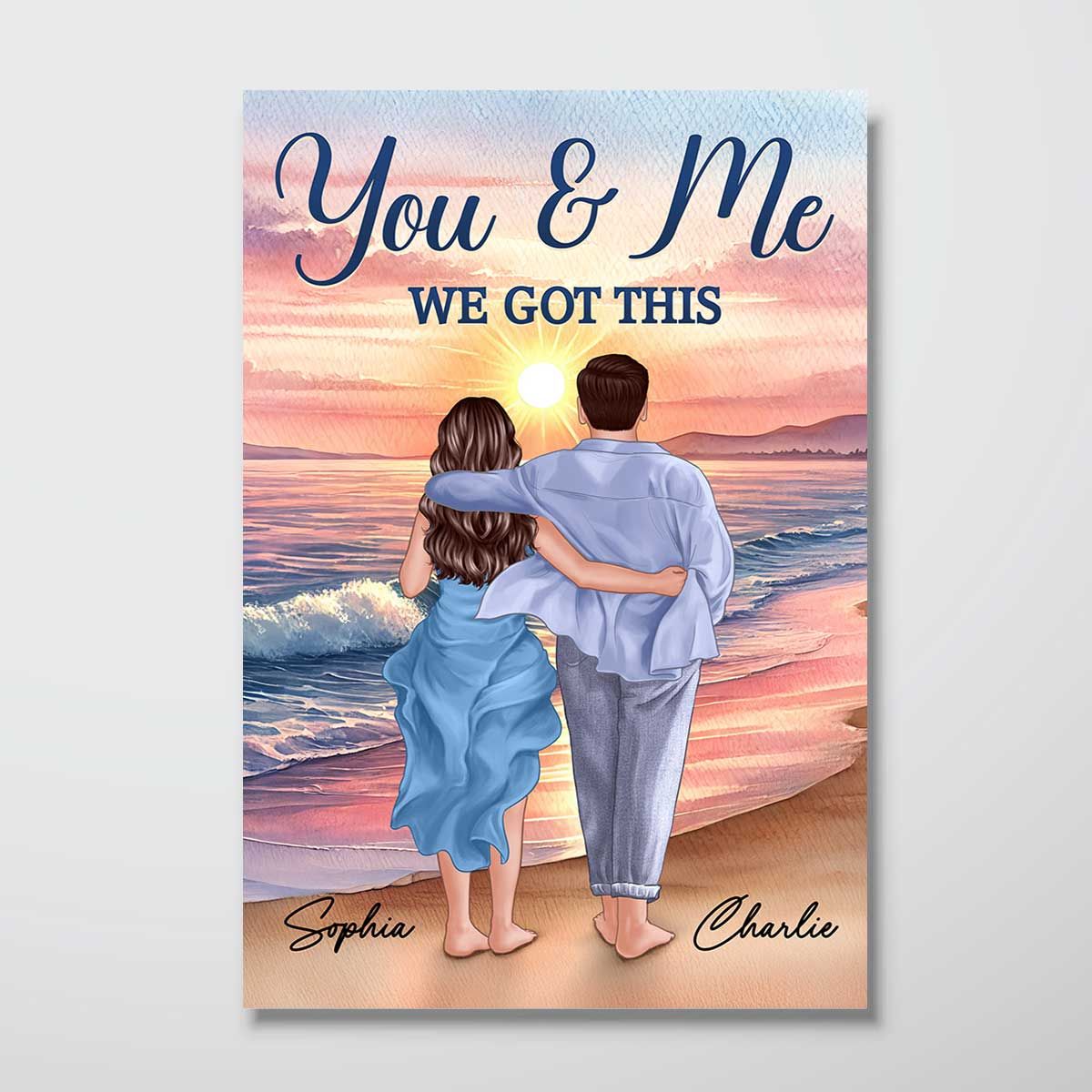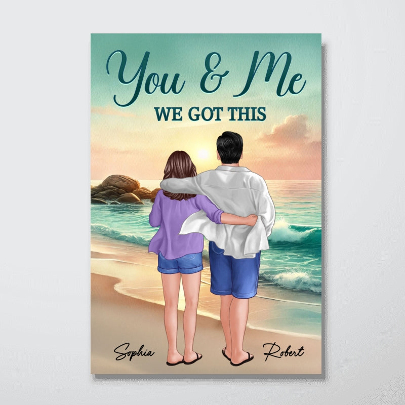 Back View Couple Embracing & Walking On The Beach Personalized Canvas, Heartfelt Gift For Couple, For Him, For Her, Boyfriend, Girlfriend, Husband, Wife