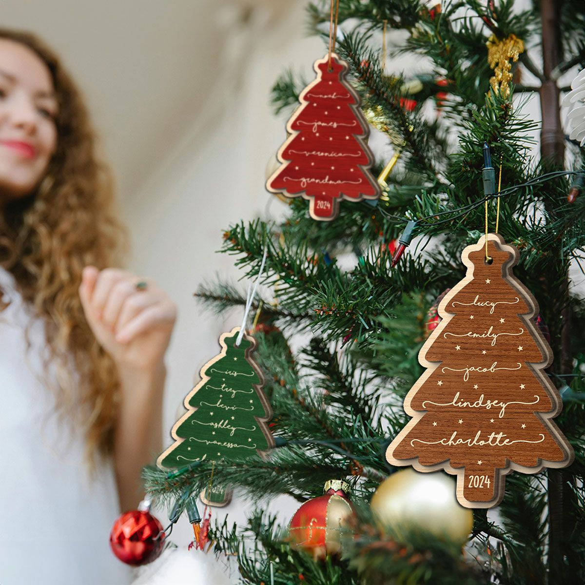 Beautiful Christmas Tree With Family Members Names Personalized 2-Layer Wooden Ornament