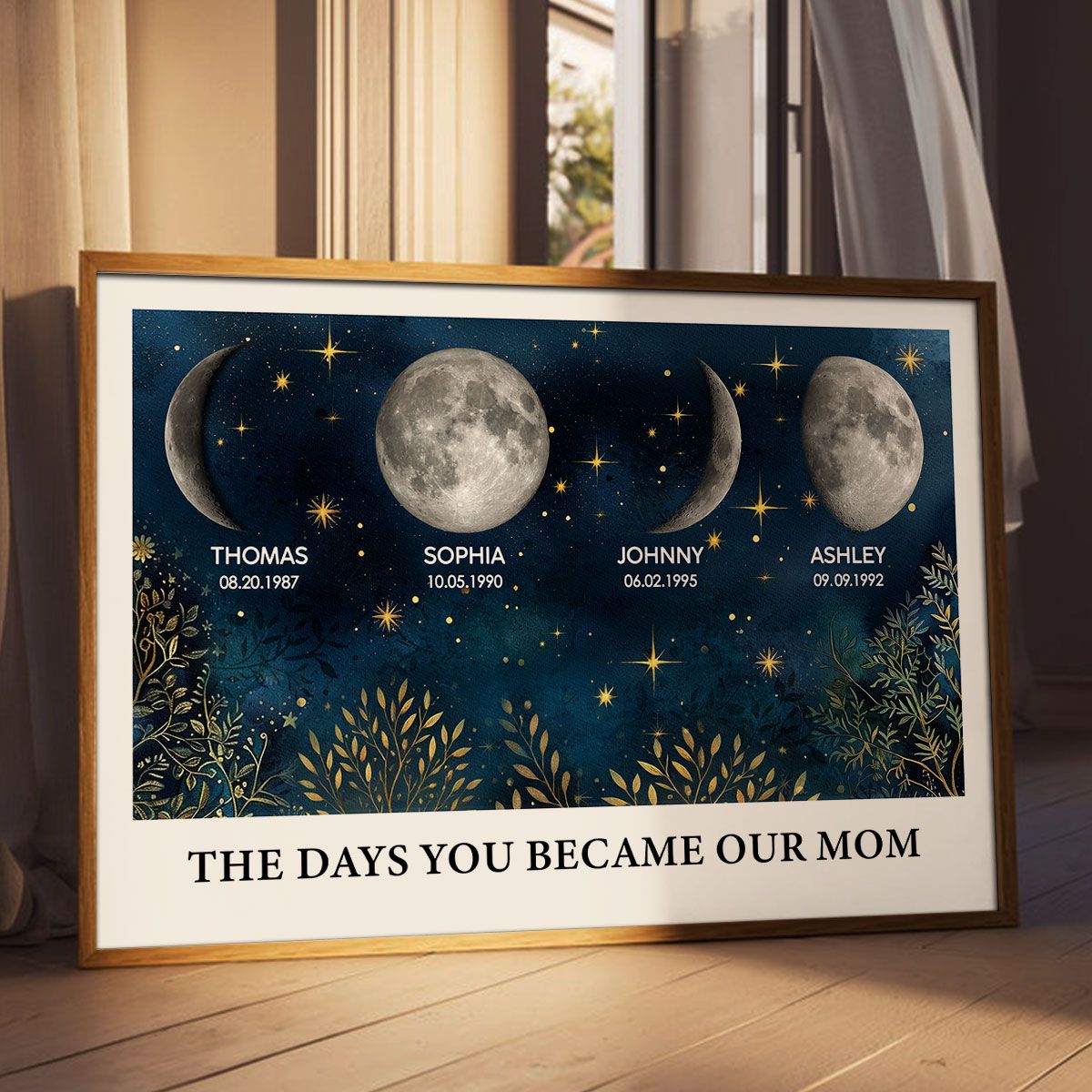 Beautiful Night Sky Custom Birth Moon Phase The Day You Became Our Mom Personalized Canvas, Mother's Day Gift