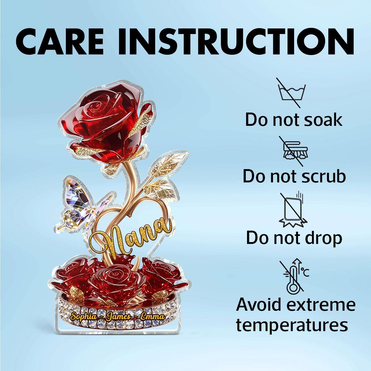 Beautiful Rose For Grandma Mom Realistic 3D Effect Personalized Flat Acrylic Block Plaque