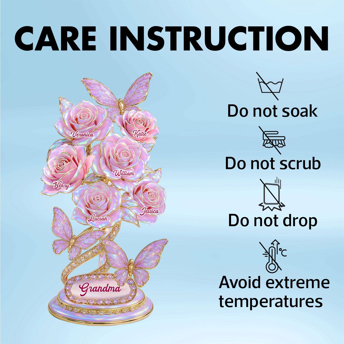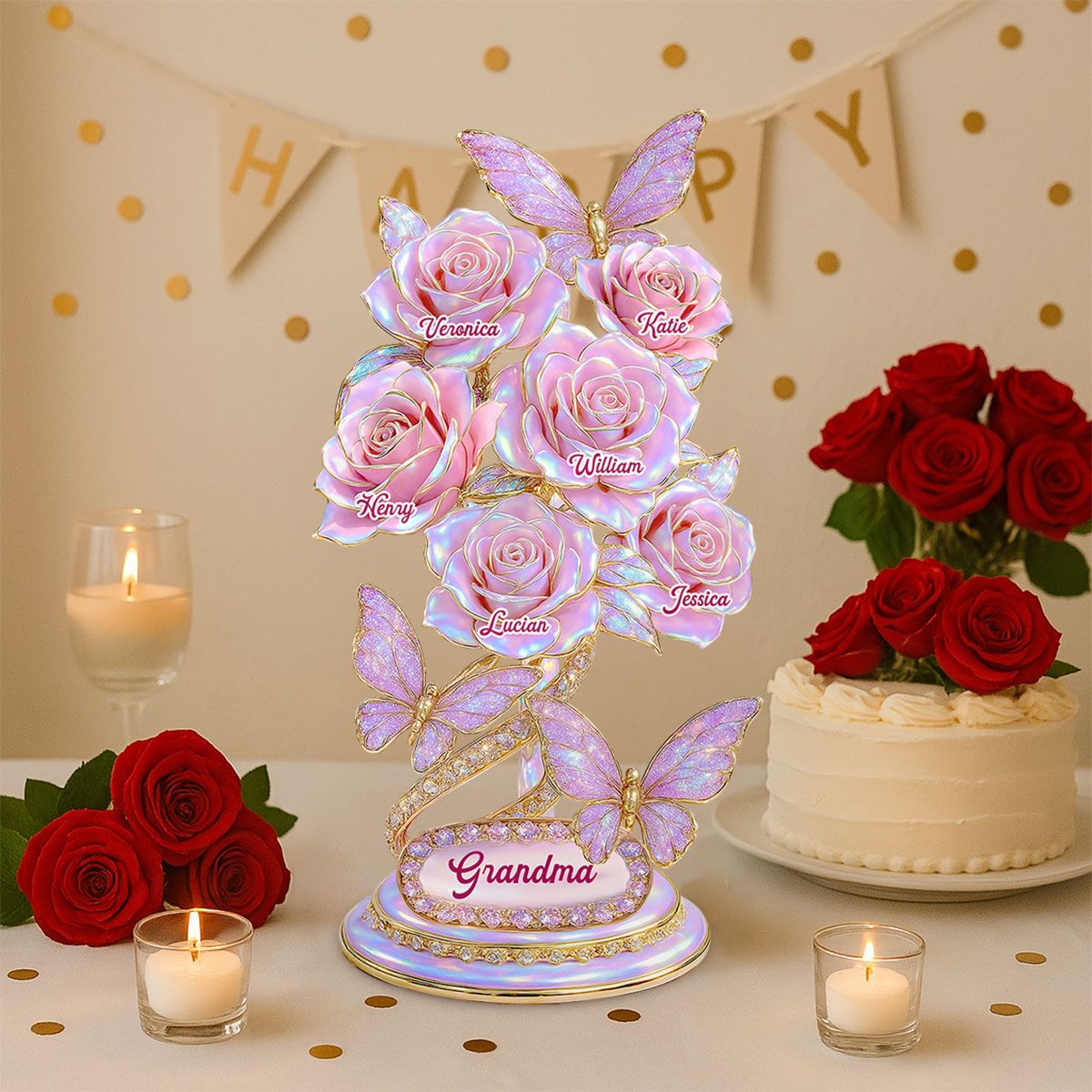 Beautiful Roses With Kids Names Pearl & Stone Effect Personalized Flat Acrylic Block Plaque