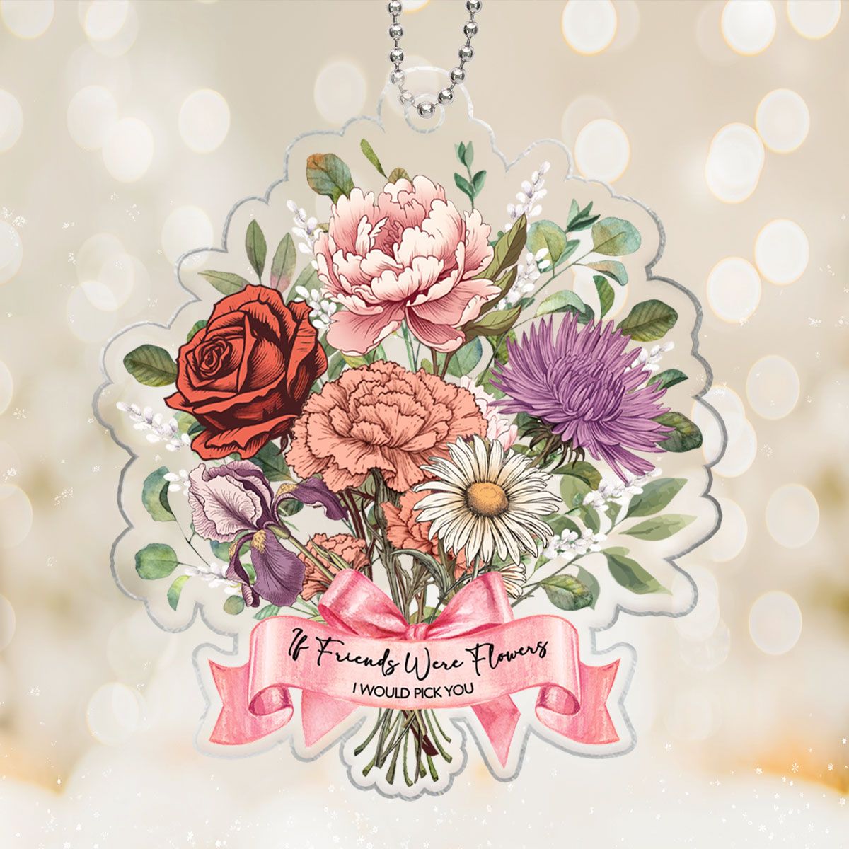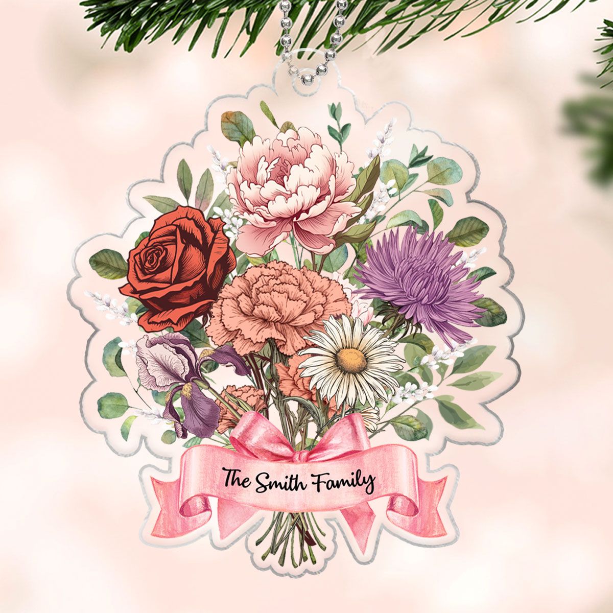 Birth Month Flower Bouquet Family Besties Personalized Acrylic Ornament, Christmas Decor