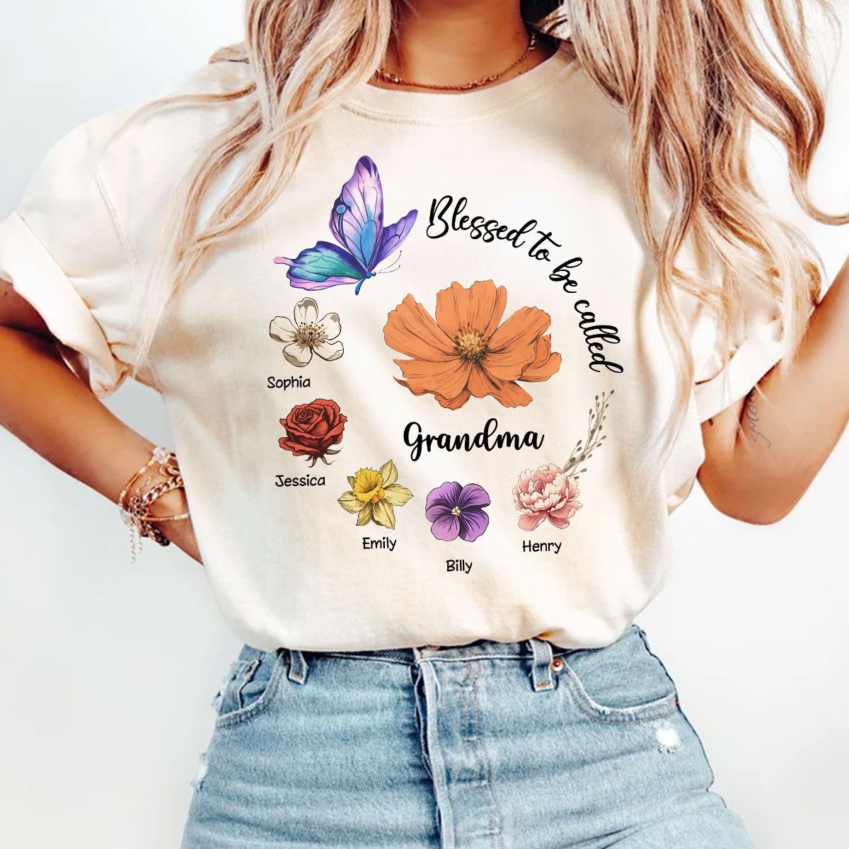 Blessed To Be Called Mom Grandma Circle Birth Month Flowers Personalized Shirt, Mother's Day Gift for Moms, for Grandmas