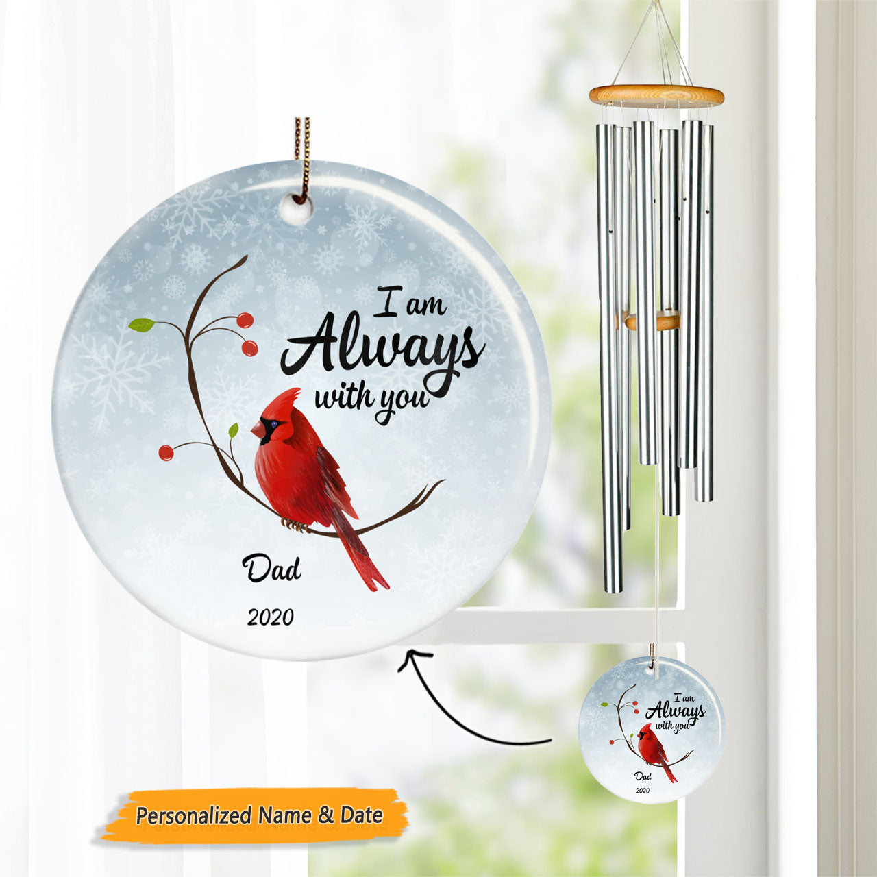 Cardinal Always With You Personalized Memorial Circle Wind Chime