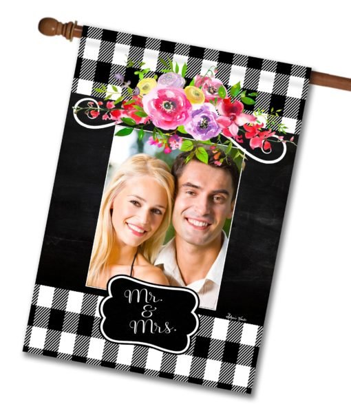 Chalkboard Mr. & Mrs. Personalized Photo – Wedding Garden & House Flag
