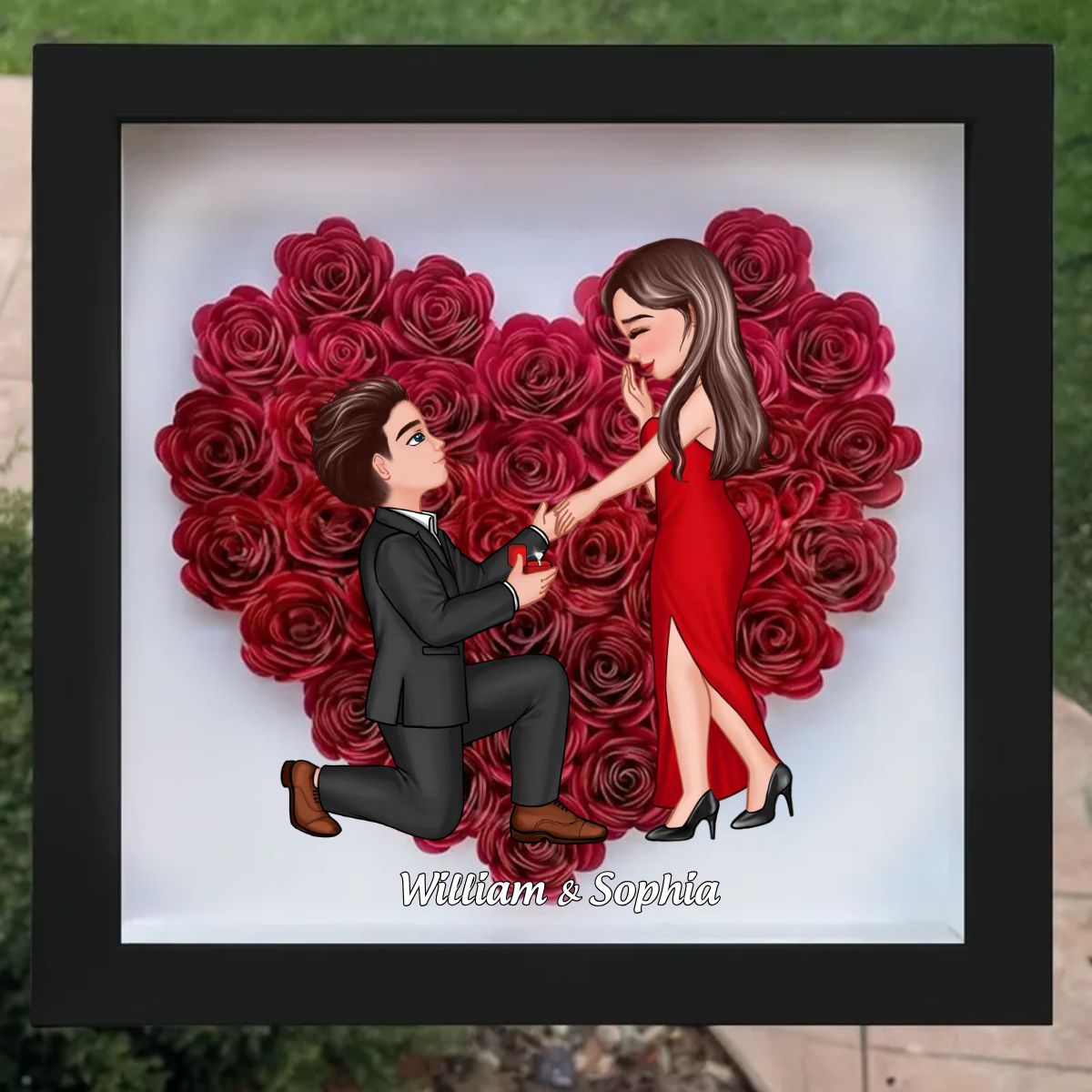 Couple Proposal Engagement Gift Personalized Heart Rose Shadow Box