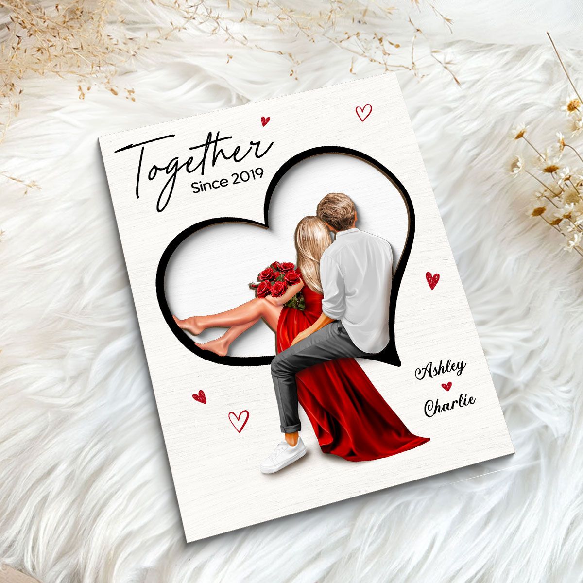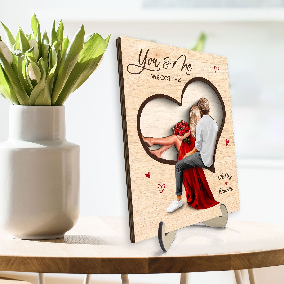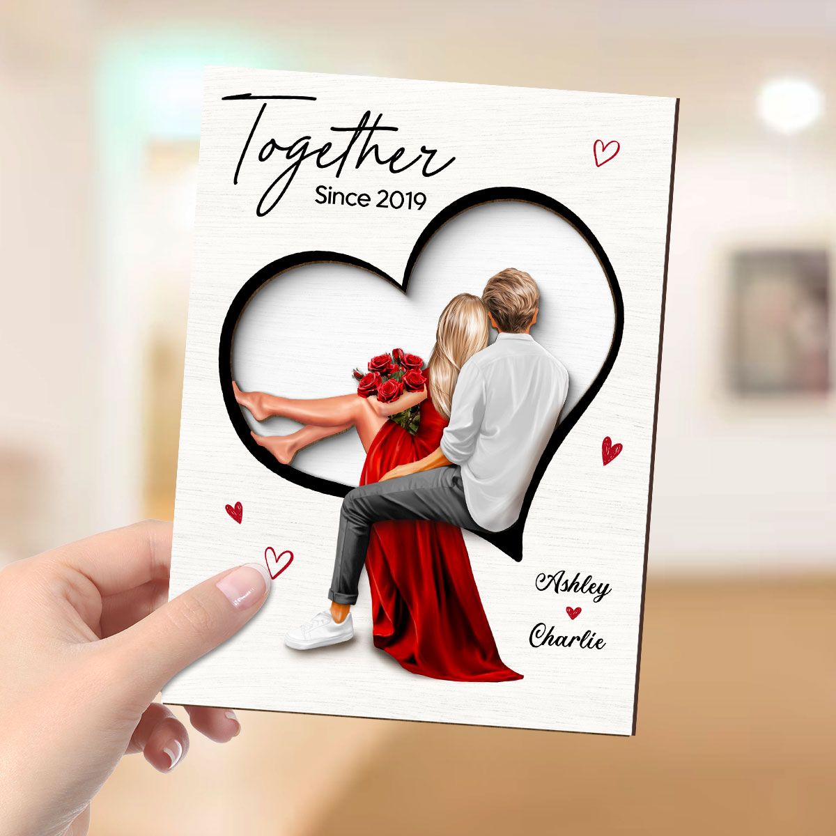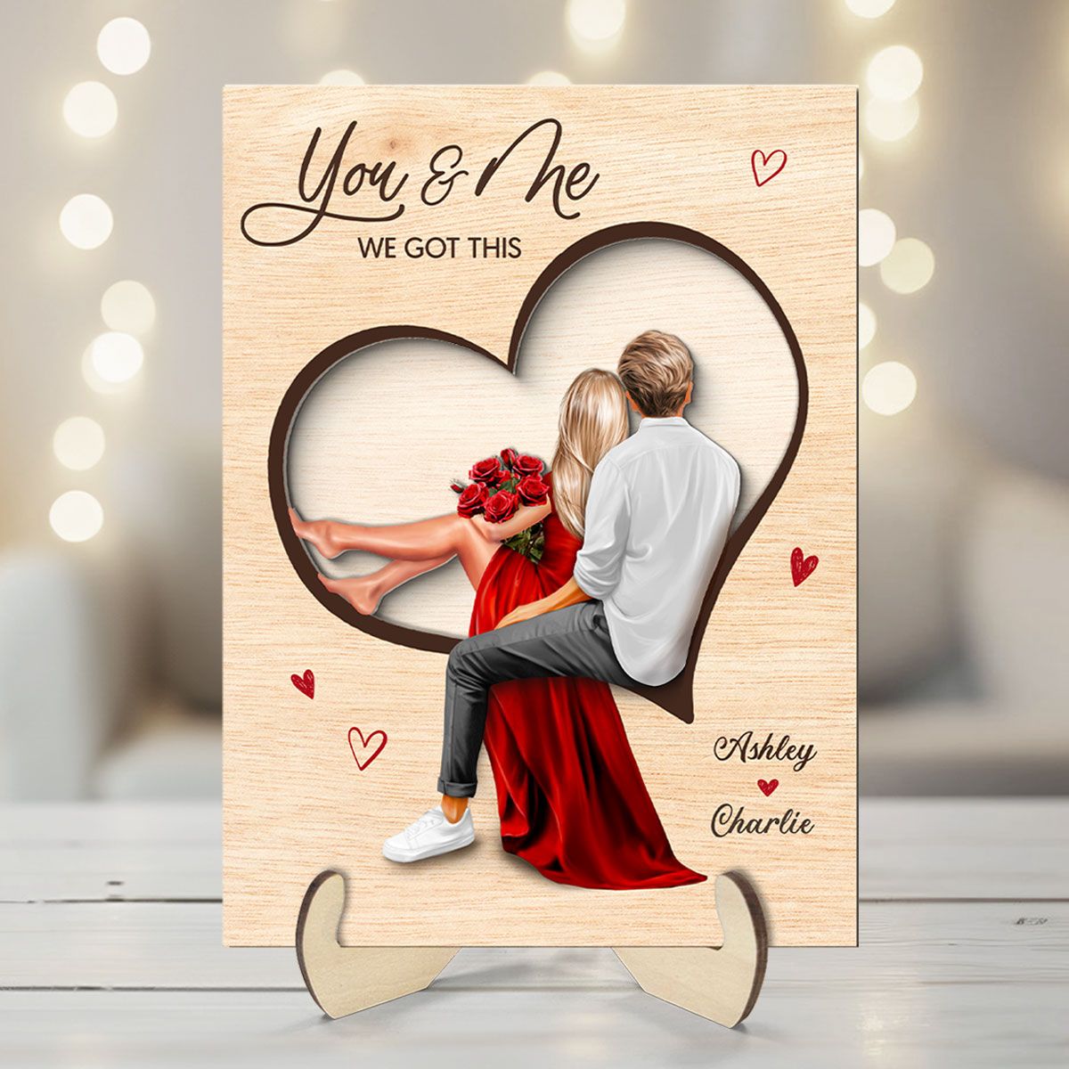 Couple Sitting On Heart Engraved Personalized 2-Layer Wooden Plaque, Valentine's Day gift, Anniversary Gift for Couples