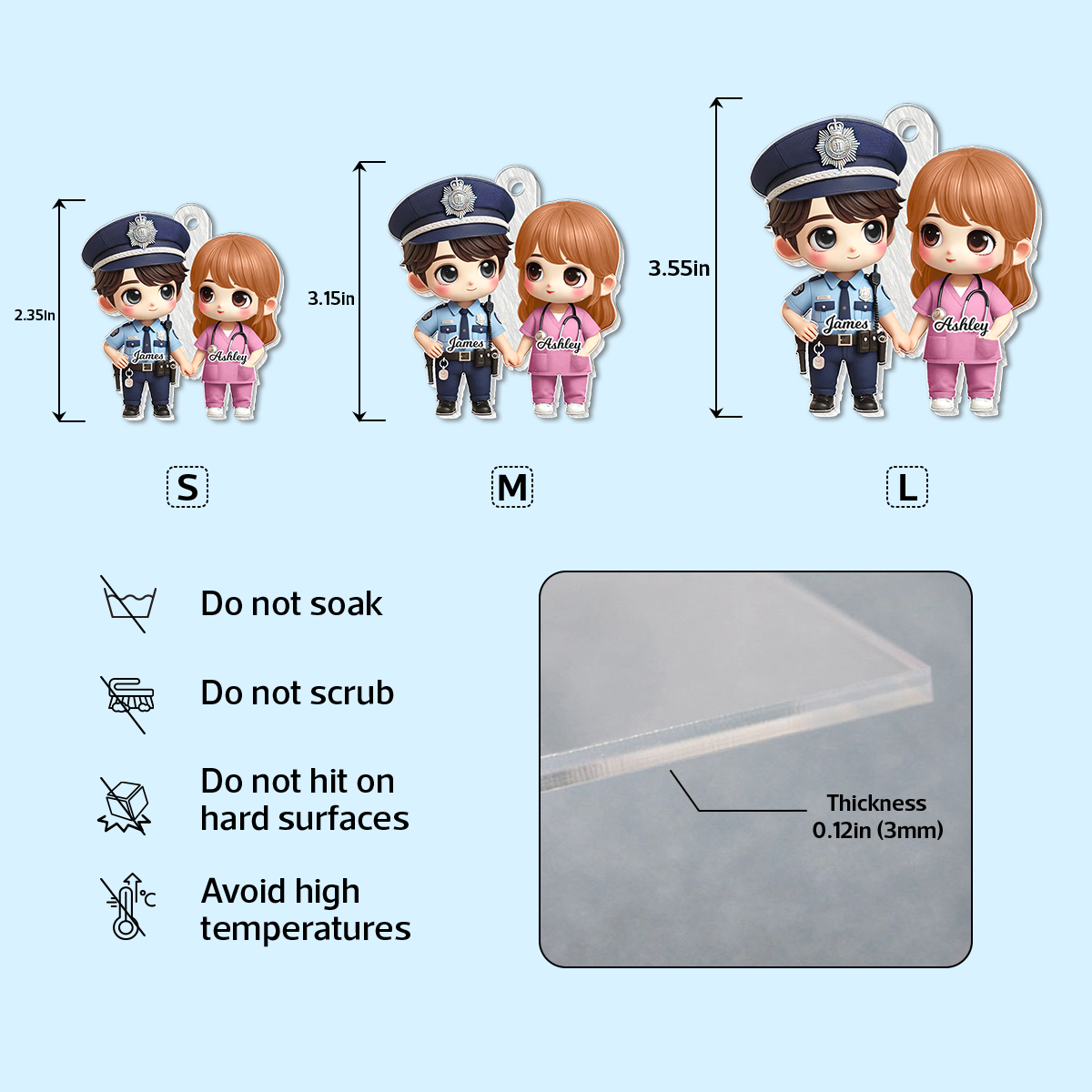 Cute Cartoon Couple Gift by Occupation Gift For Her Gift For Him Personalized Acrylic Keychain, Anniversary Gift For Couple