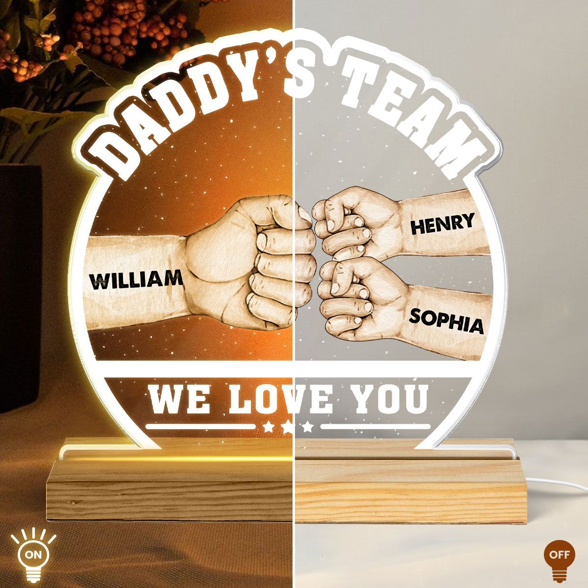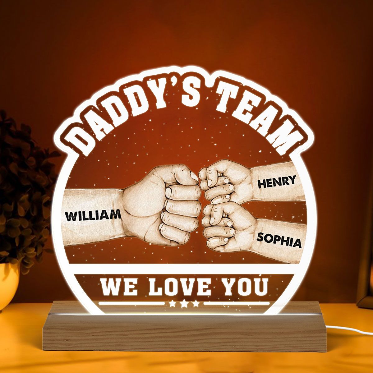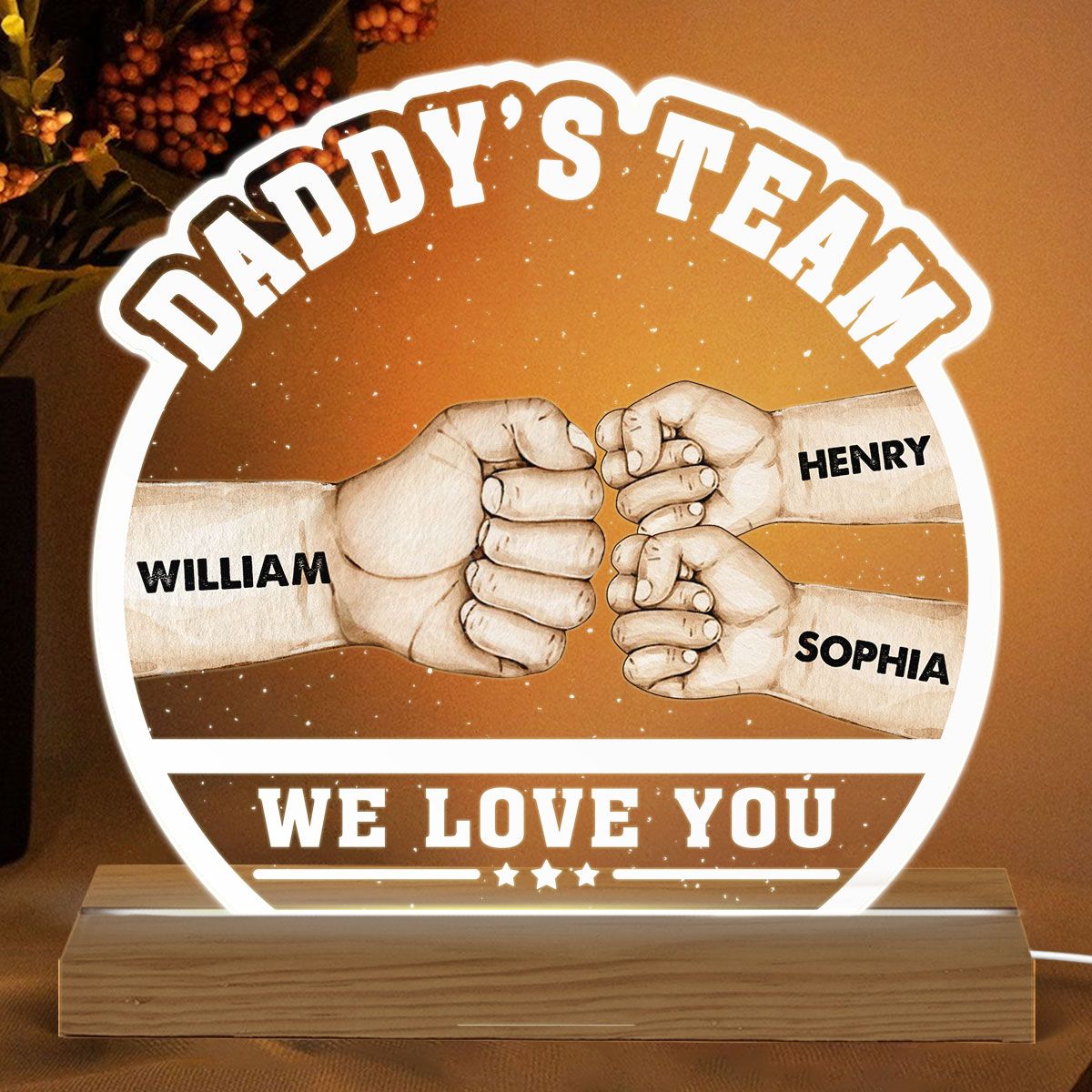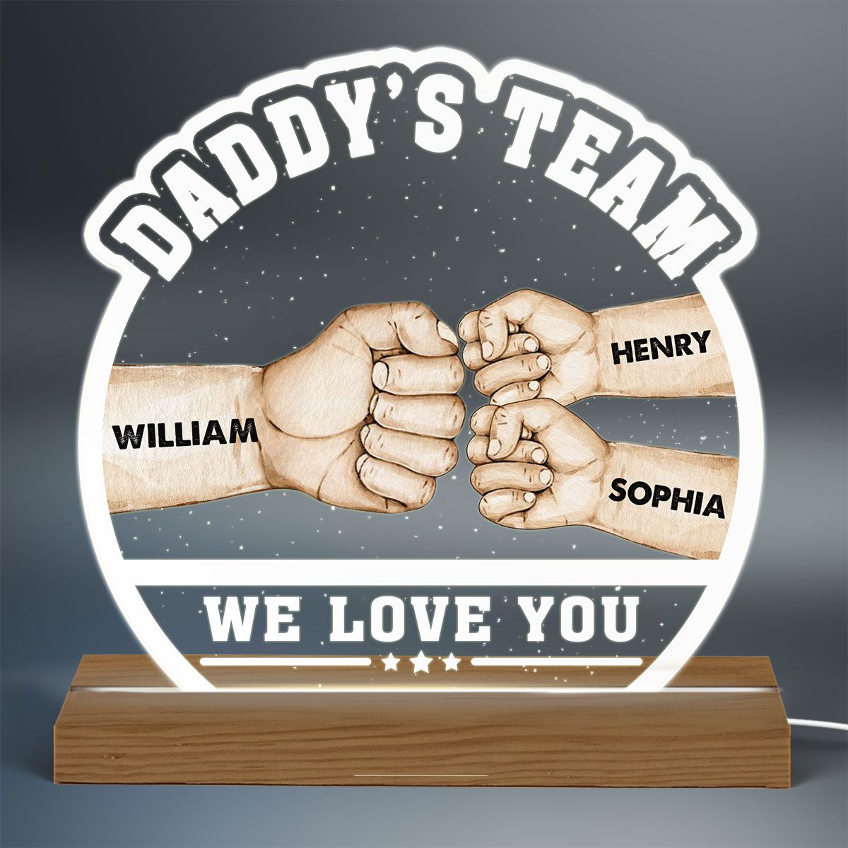 Daddy‘s Team Fist Bump Personalized Custom Shape Acrylic Warm LED Night Light