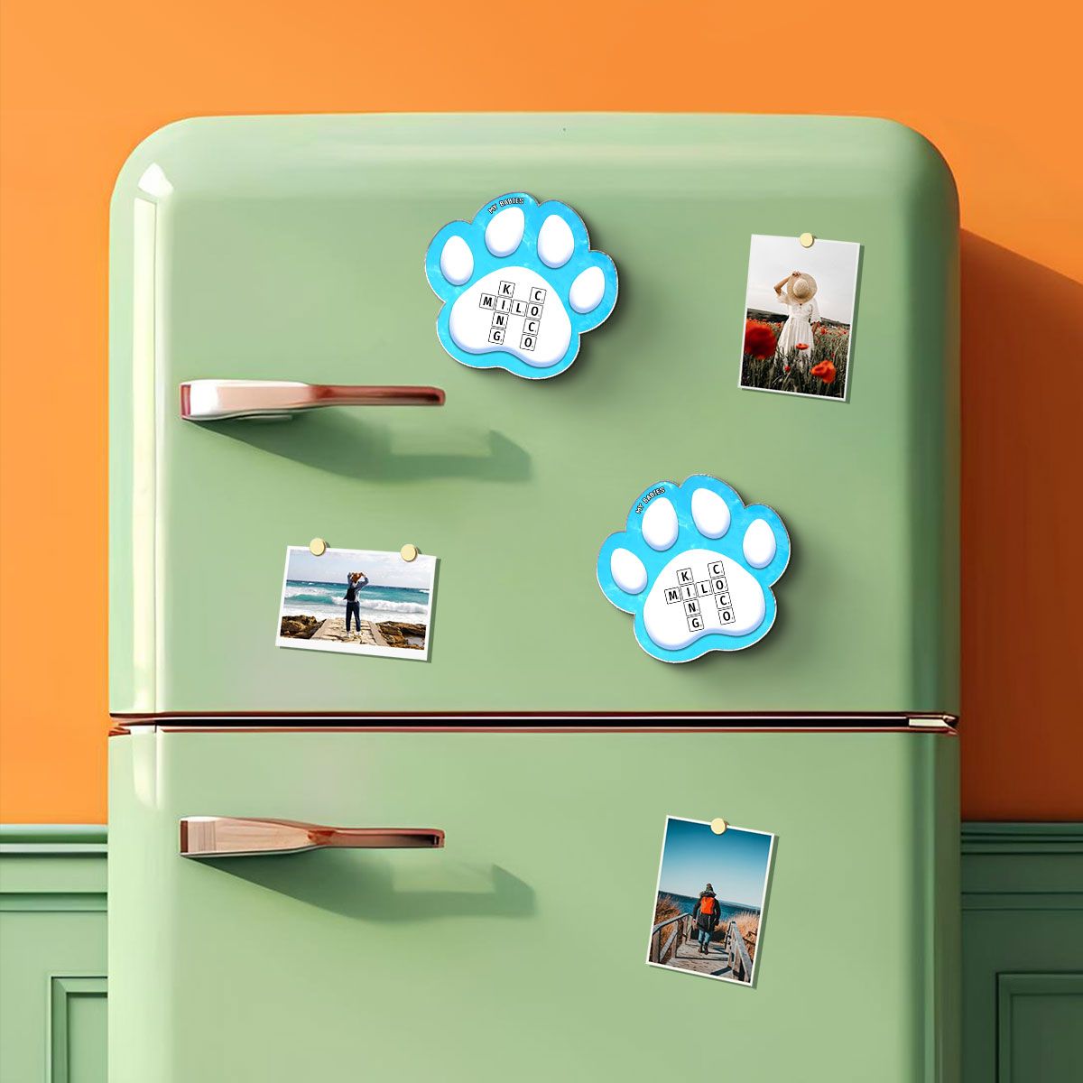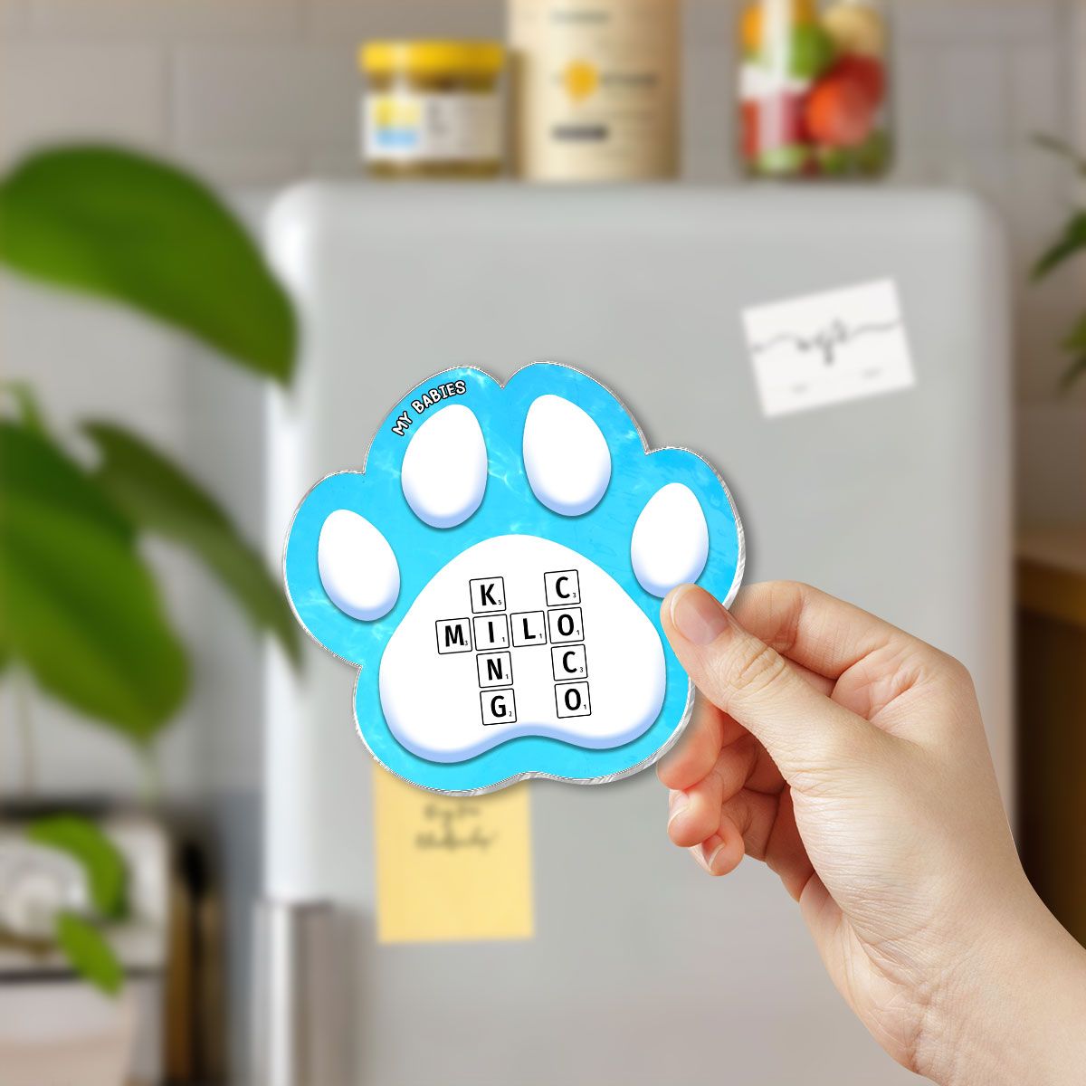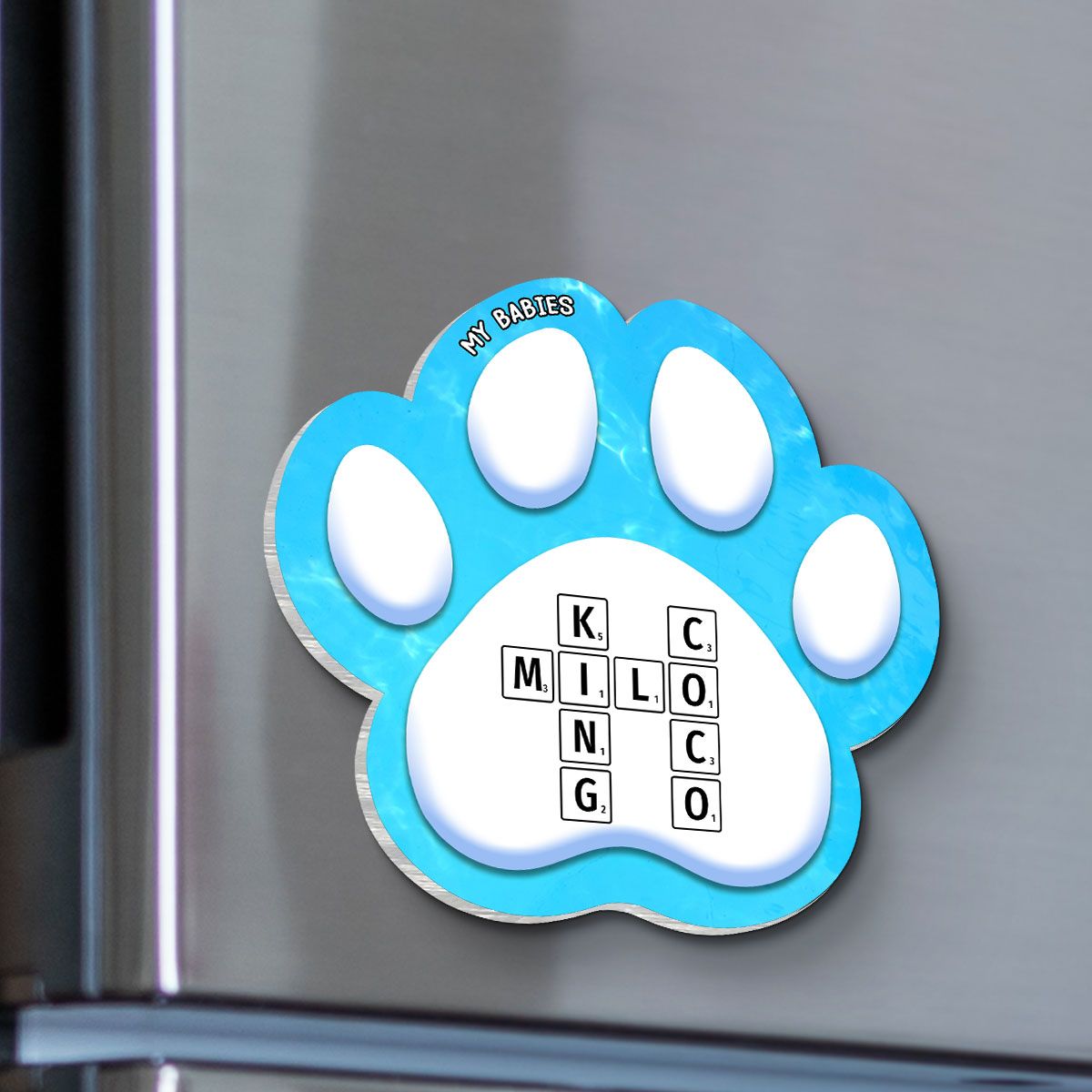 Dog Cat Pet Names Crossword Puzzle Art Personalized Paw Shaped Acrylic Fridge Magnet