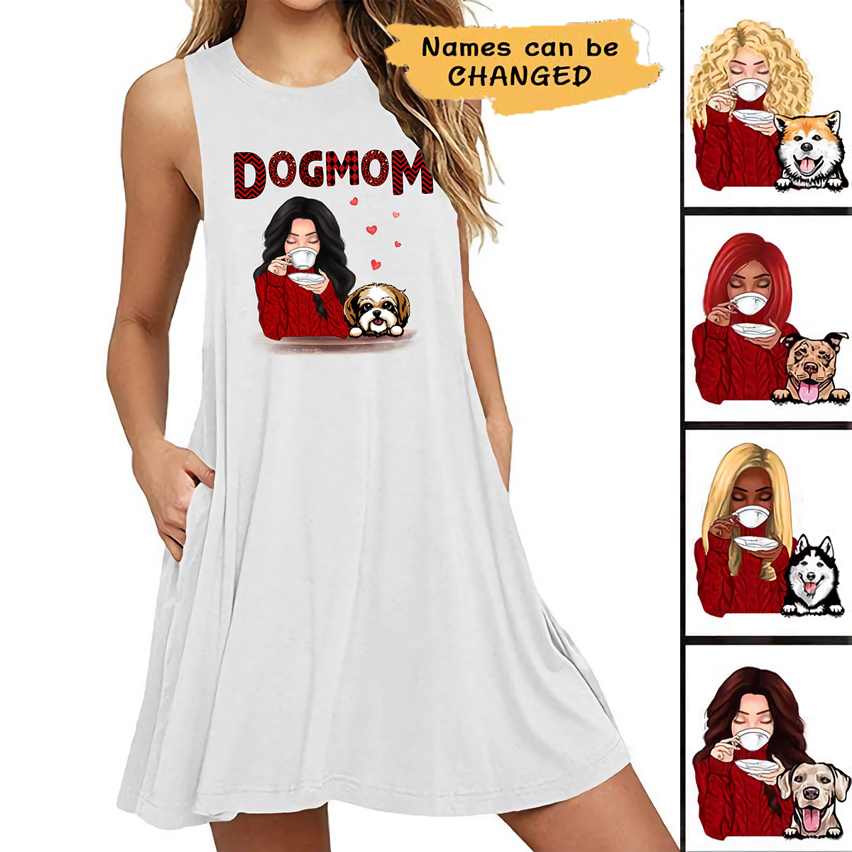 - Sundresses for women with two side hidden pockets,casual summer dress,round-neck,midi knee length,sleeveless casual loose style,A-line t-shirt dress