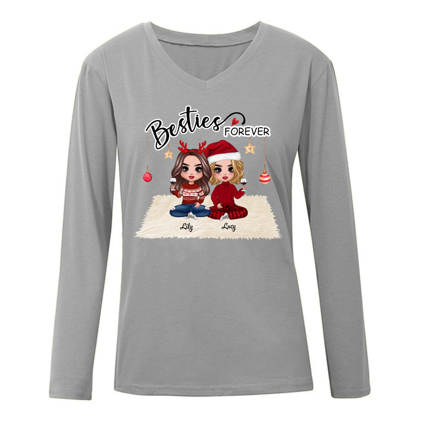 Doll Besties Christmas Checkered Pants Personalized Long Sleeve Shirt