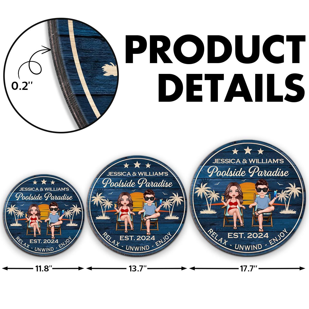 Doll Couple Sitting Poolside Paradise Personalized Wood Sign