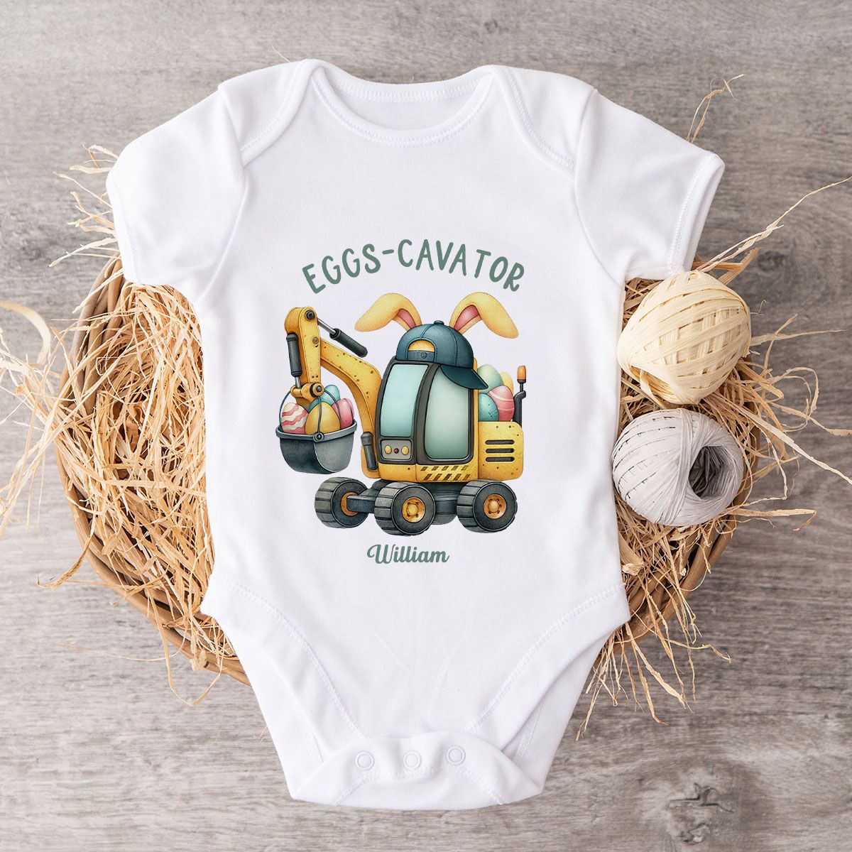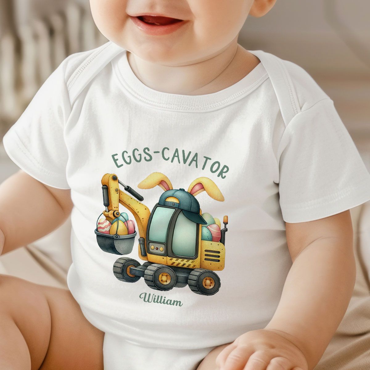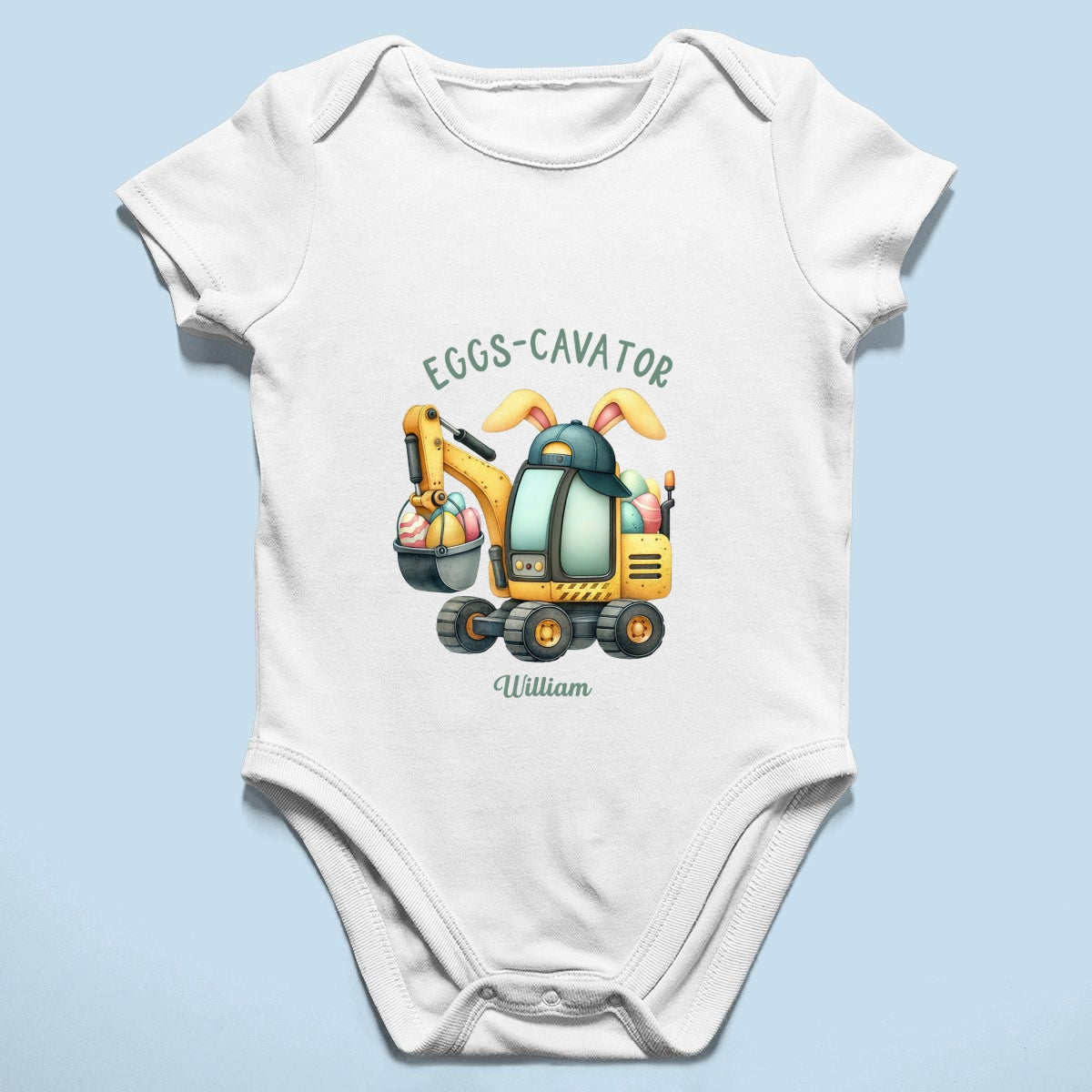 Eggs-Cavator Boy Girl Watercolor Personalized Baby Onesie Baby Shirt