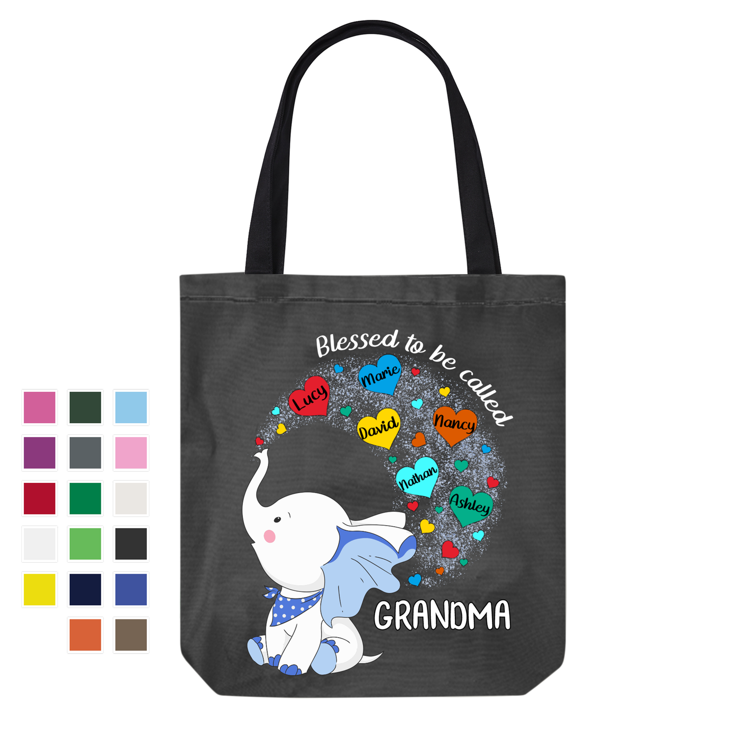 Elephant Grandma Sprays Hearts Personalized Canvas Bag