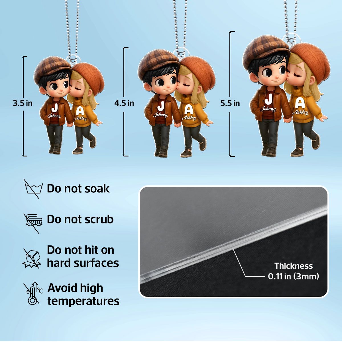 Fall Season 3D Effect Cute Cartoon Couple Walking Personalized Car Ornament, Perfect Gift for him, Gift for her
