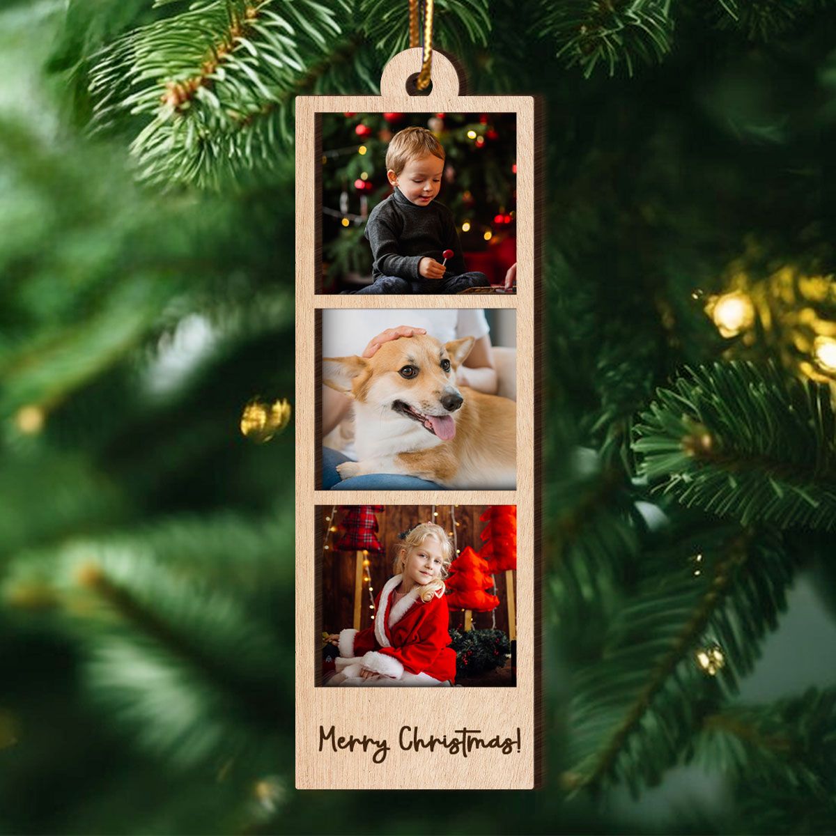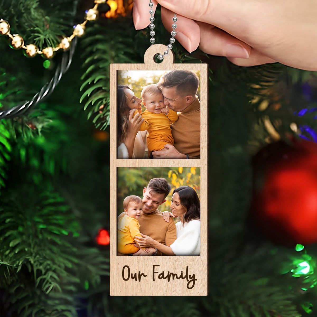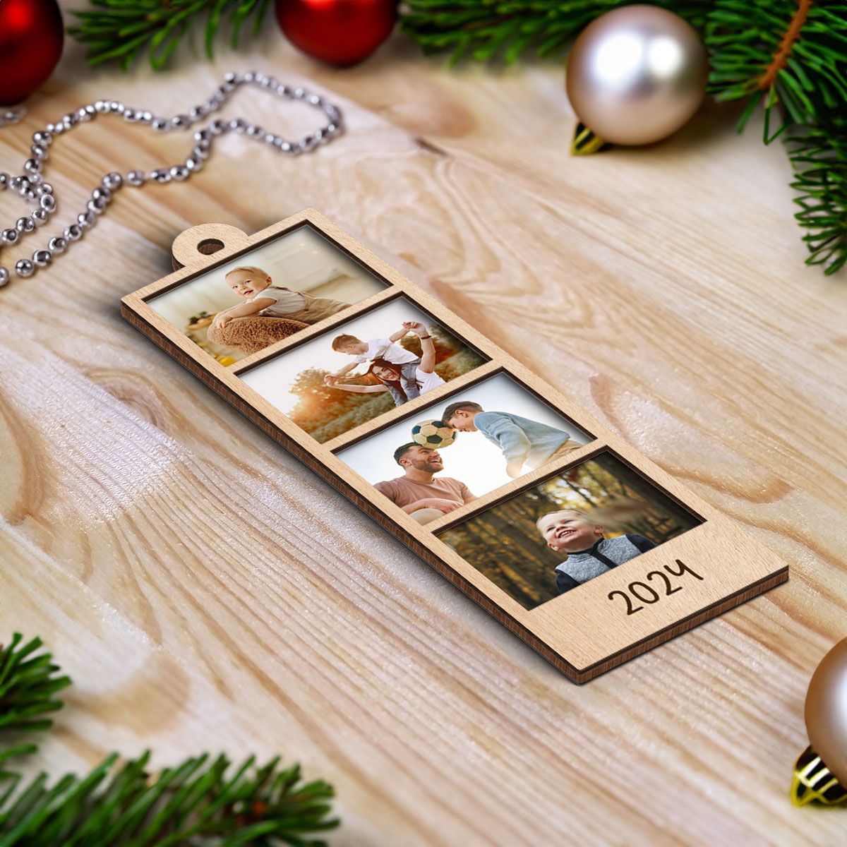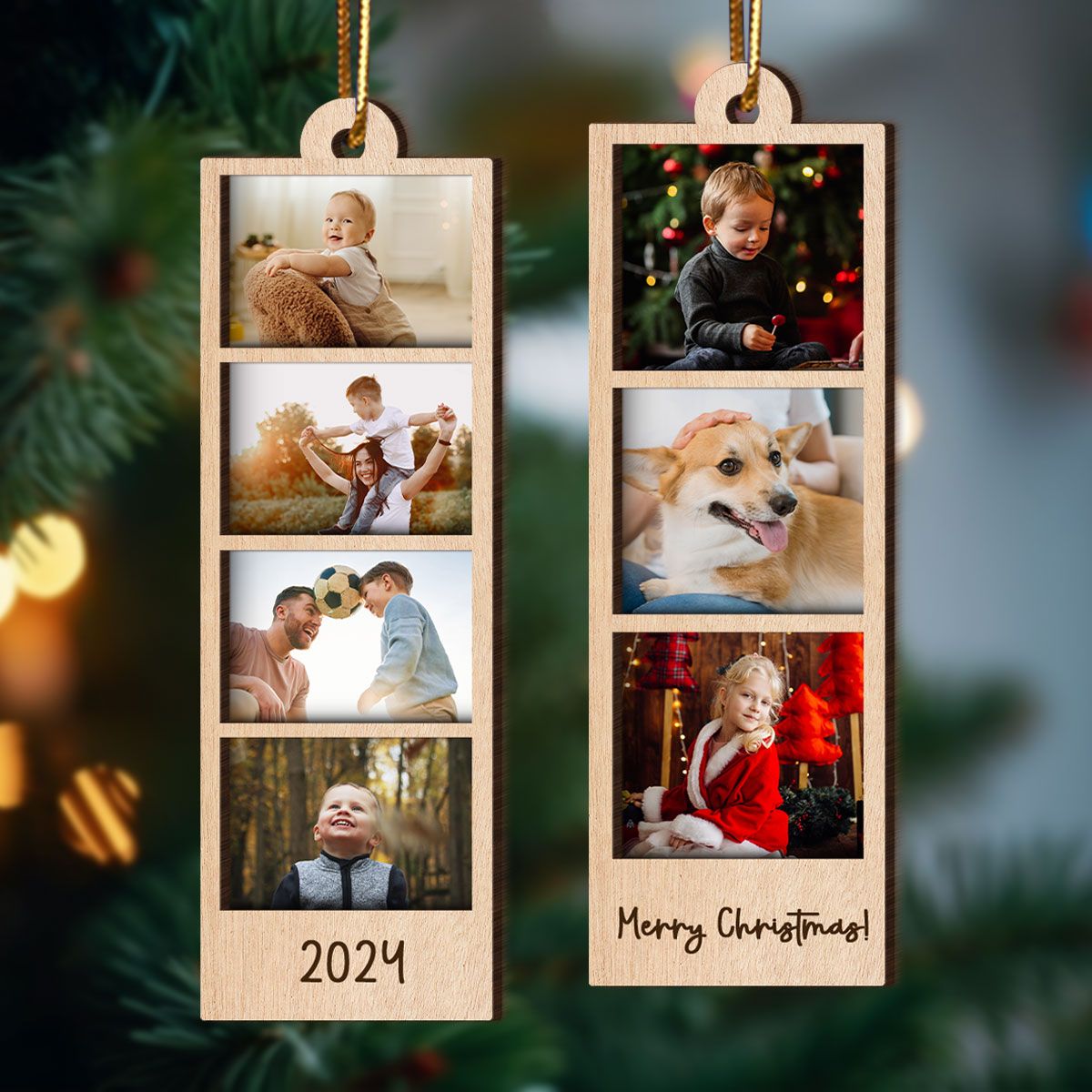 Family Couple Sisters Besties Photo Strip Ornament, Personalized Photo Strip Christmas Ornament, 2-Layered Wooden Ornament