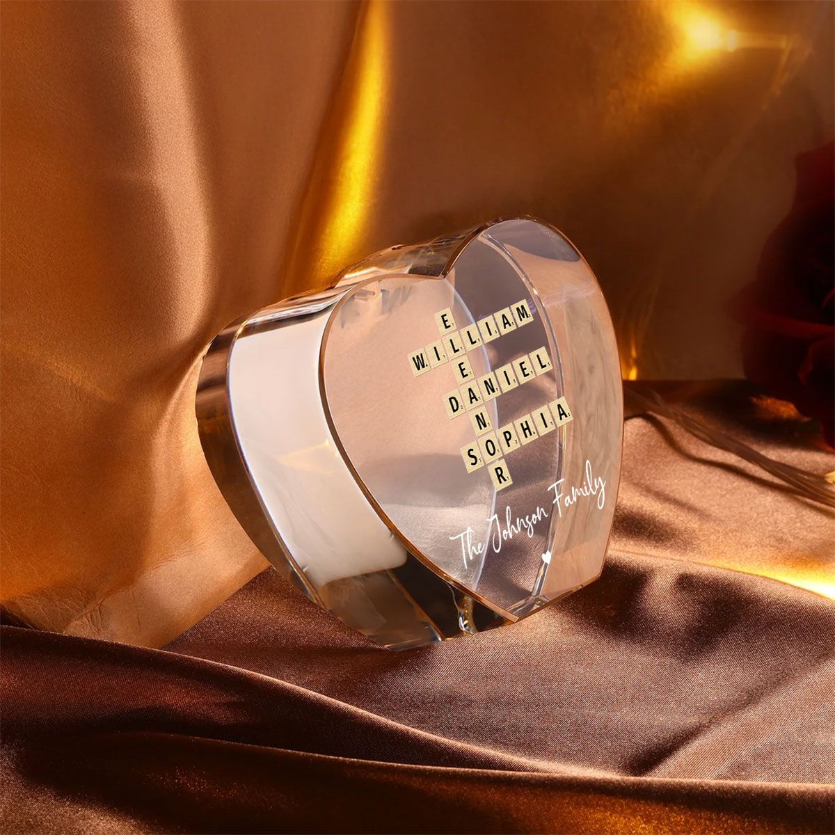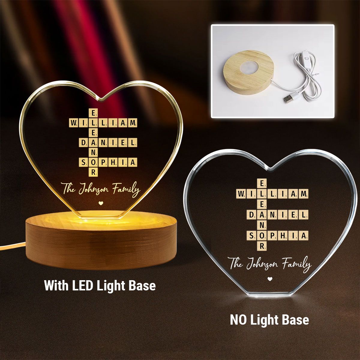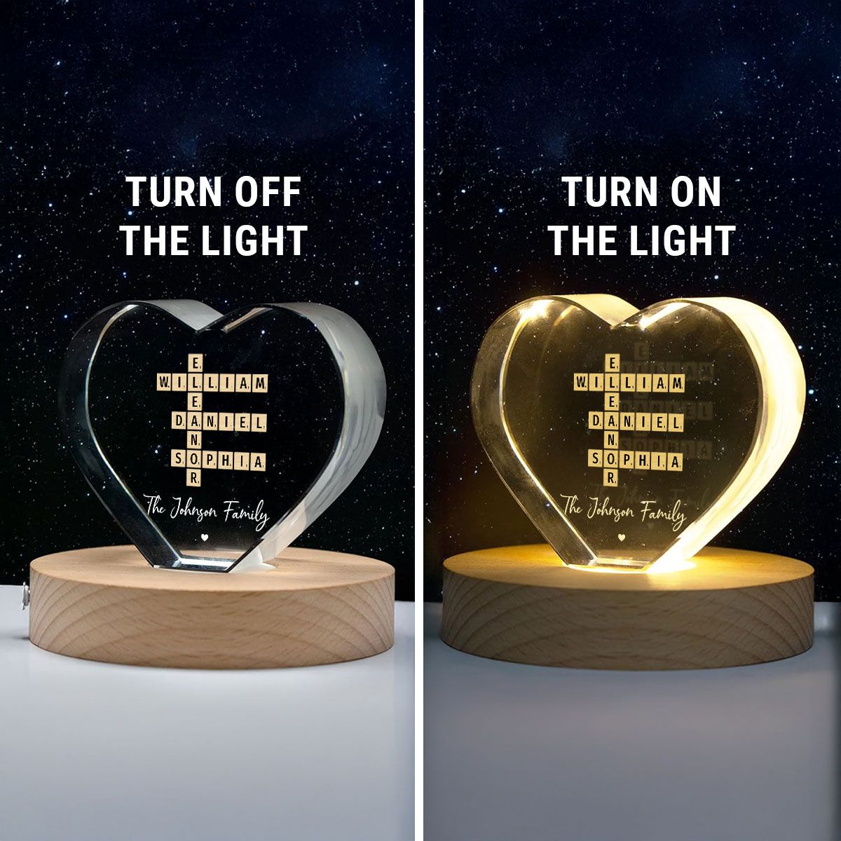 Family Names Crossword Art - Created In A Moment, Treasured Forever Personalized Heart Crystal LED