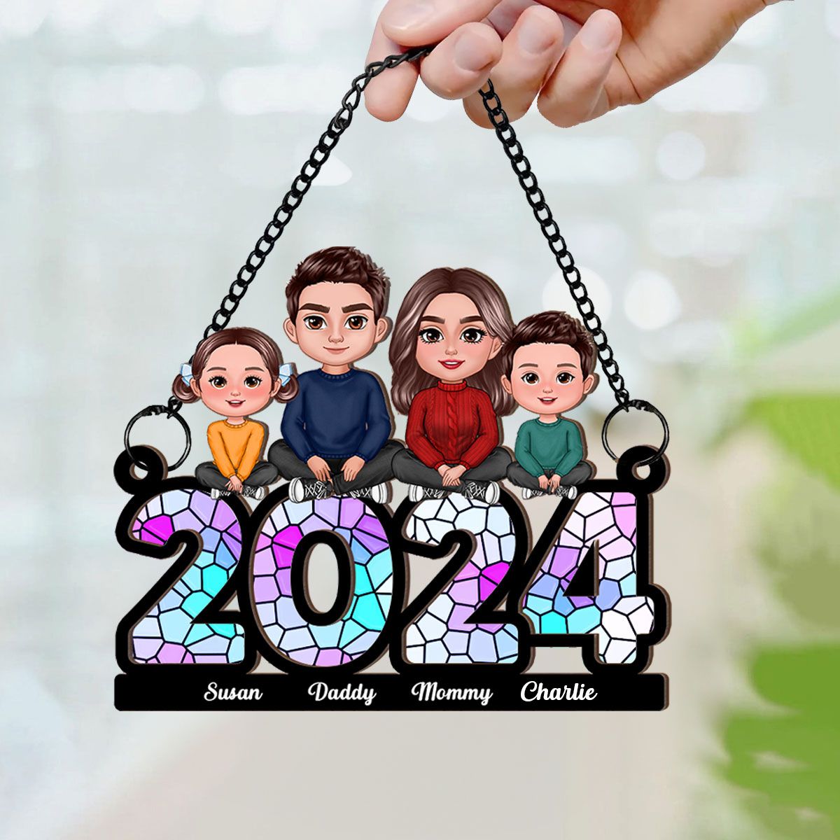Family Sitting 2024 Personalized Window Hanging Suncatcher Ornament, Christmas Decor