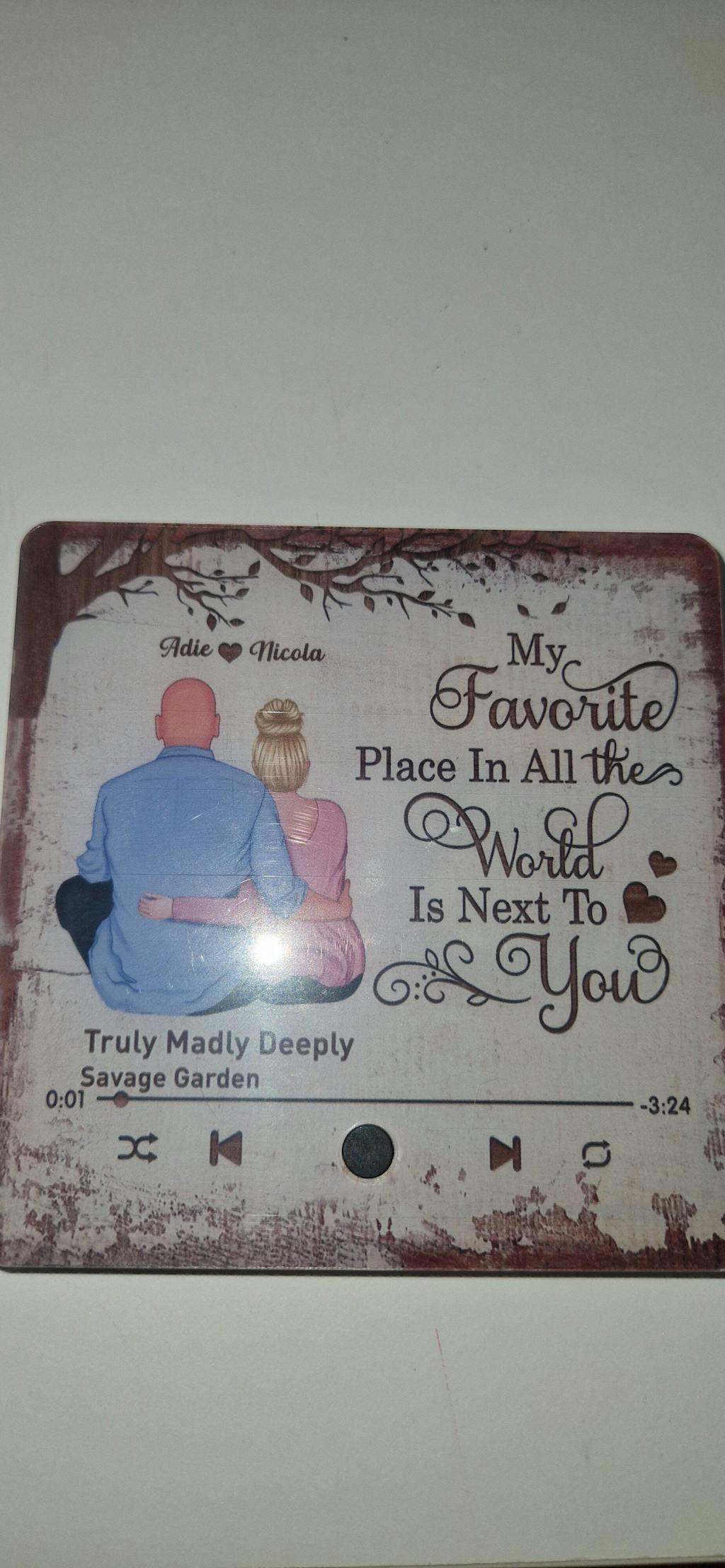 My husband absolutely loved it. Our favourite song , and the pictures of us were fab. Beautiful packaging to get to us intact. Thank you