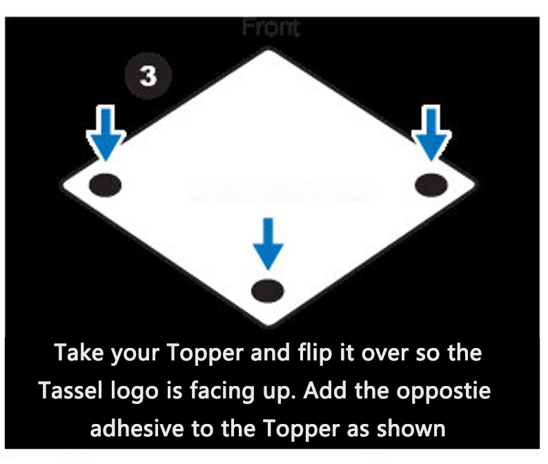 A Tassel Topper is the ultimate form of self expression and is the professional way to decorate your graduation cap. We print your design on a durable sheet of plastic that fits directly on top of your graduation cap with the help of our adhesives. The Tassel Topper won't damage your grad cap in any way and is a sure way to stand out in the crowd at your graduation ceremony. They leave room for the turning of the tassel part of the ceremony and they can be removed or reattached as many times as needed. They also last forever as the perfect graduation keepsake that can framed or displayed. (displays sold separately).