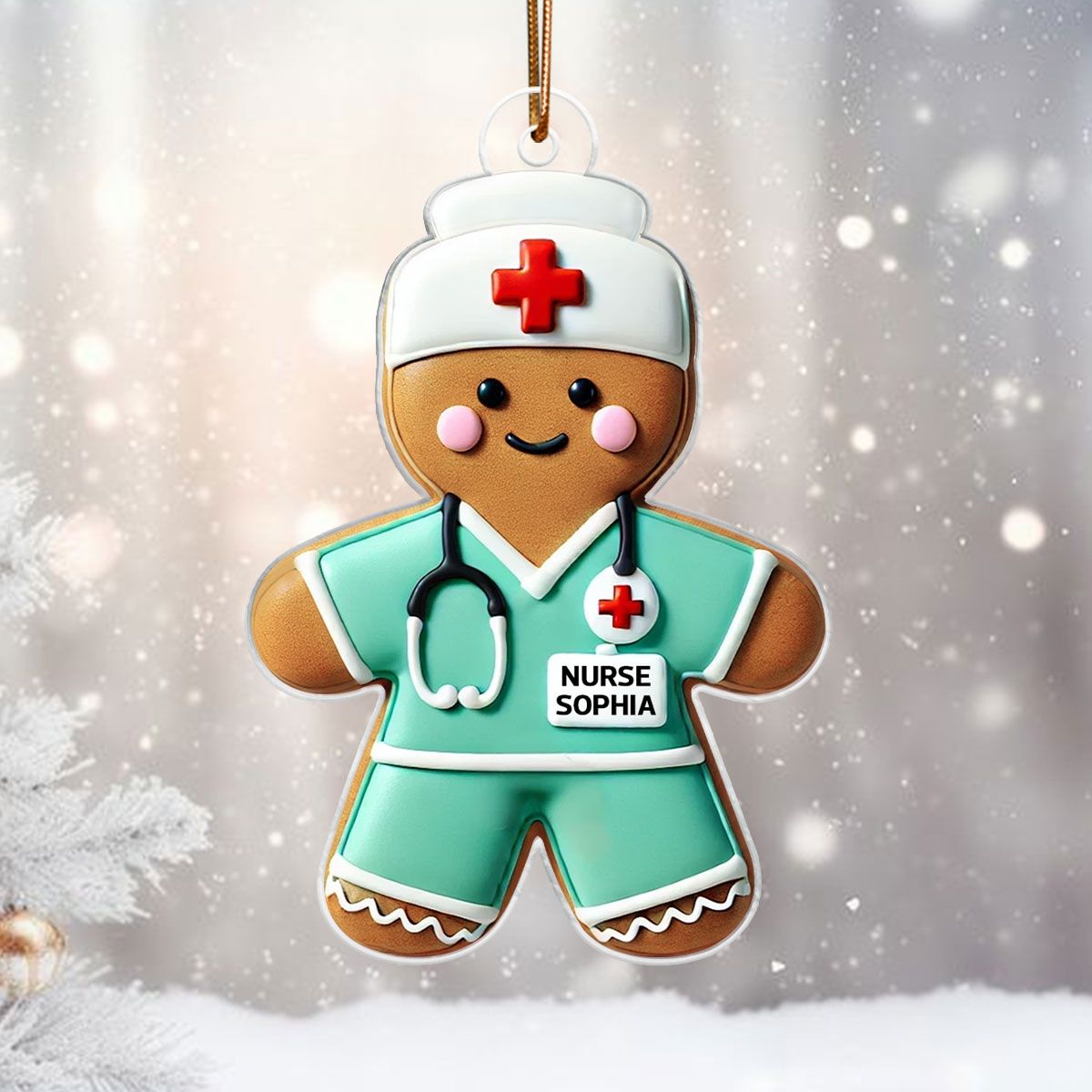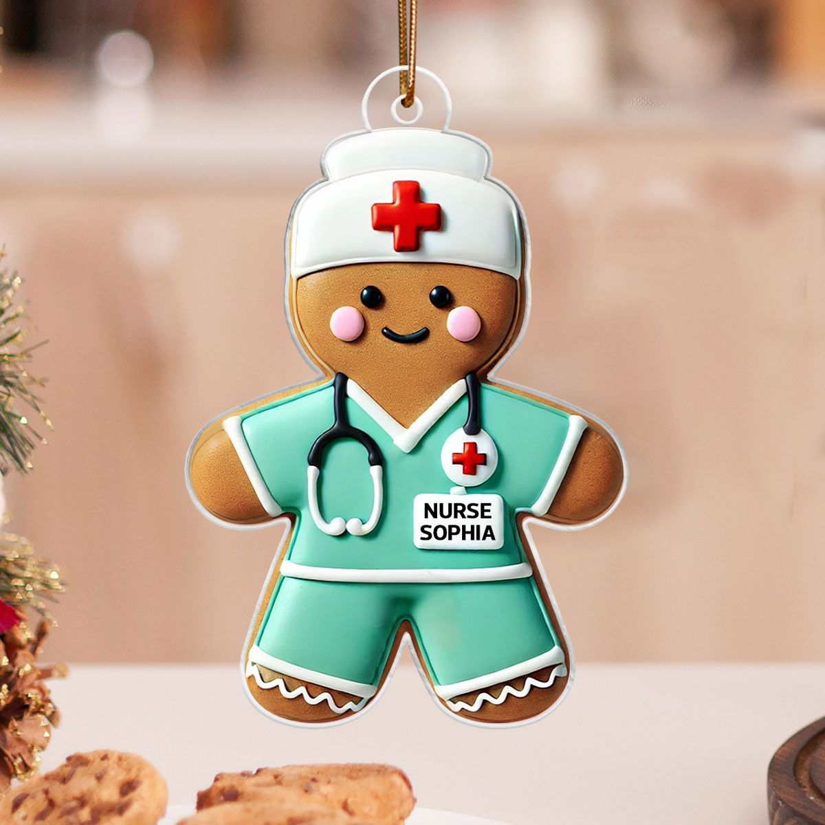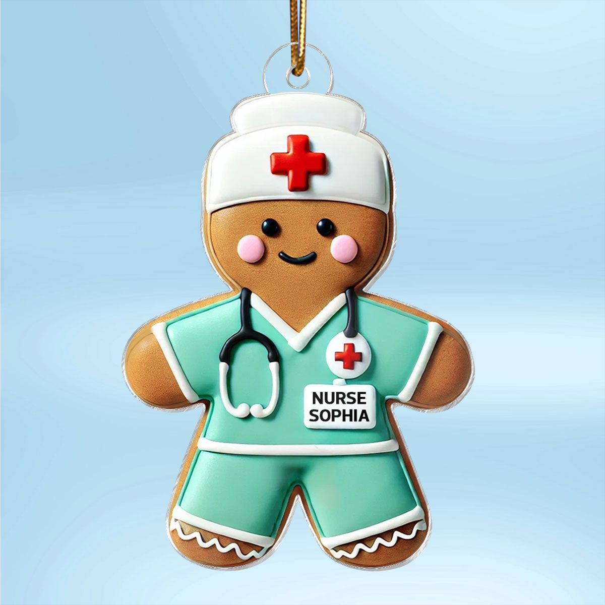 Gingerbread Nurse Personalized Acrylic Ornament, Christmas Gift For Nurses
