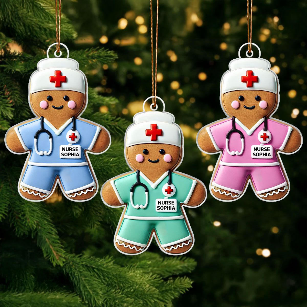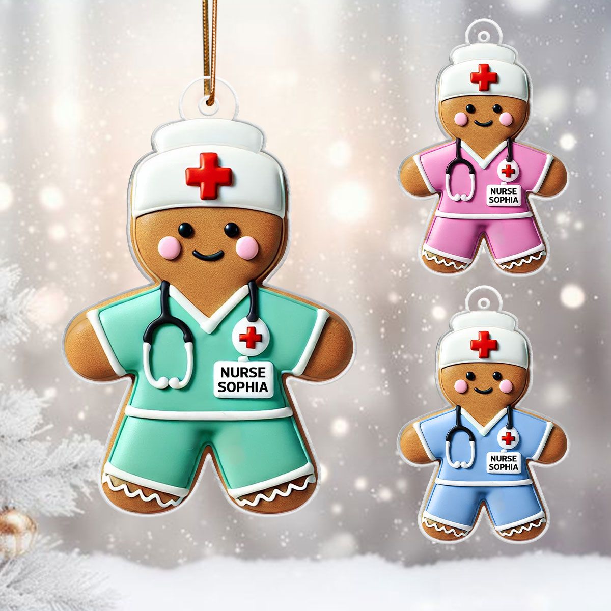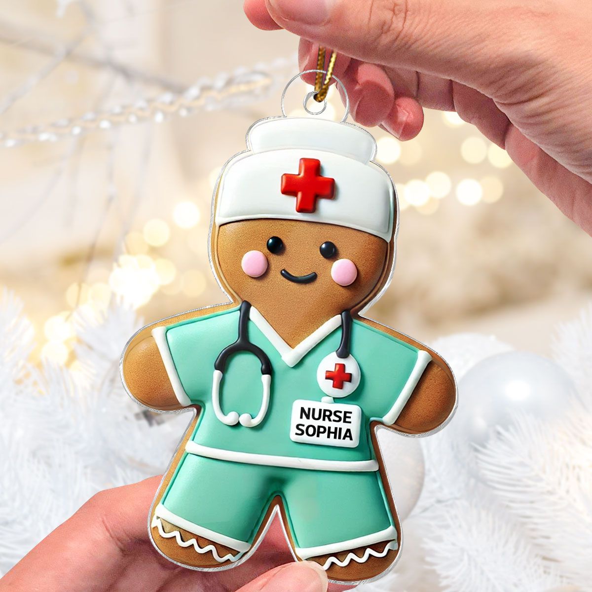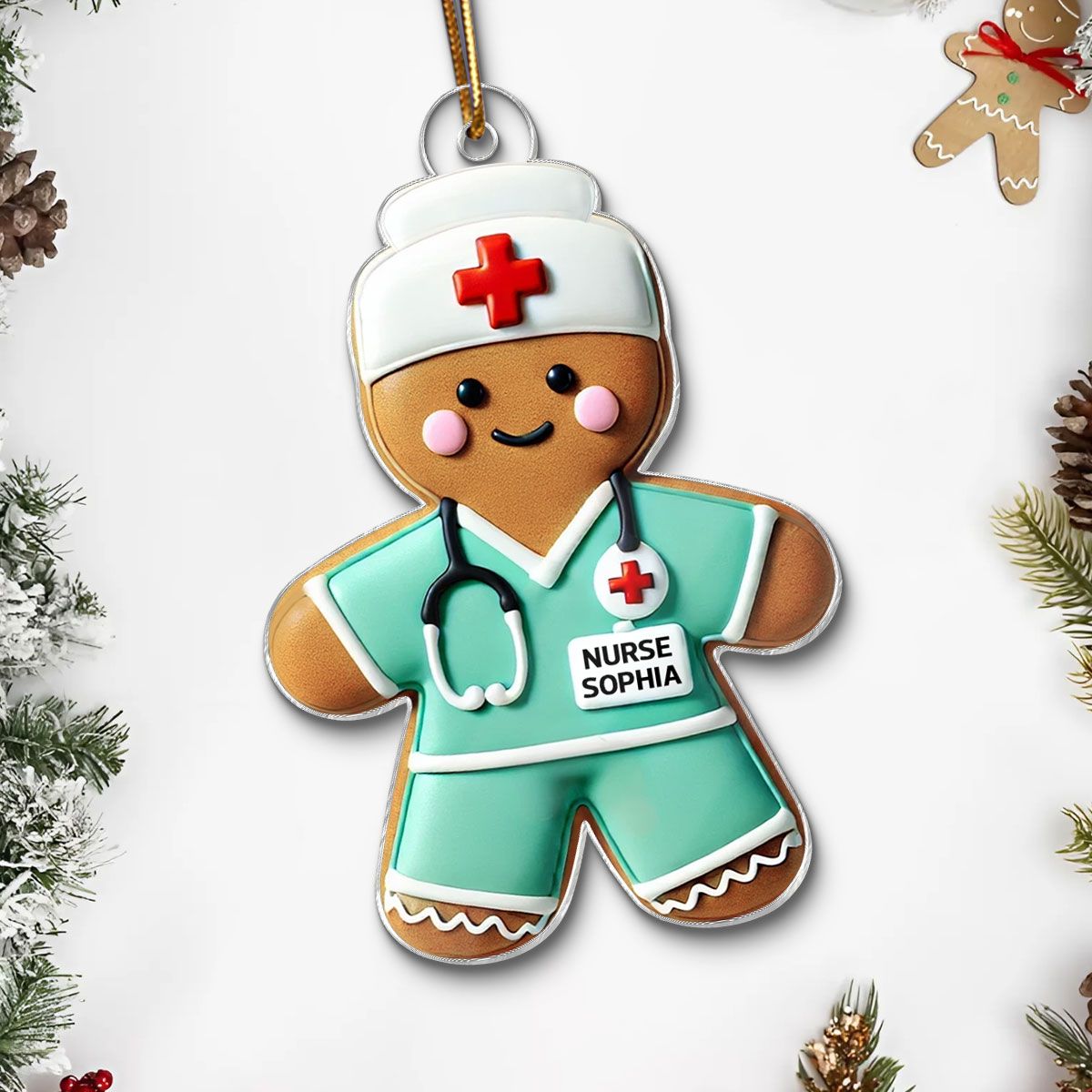Gingerbread Nurse Personalized Acrylic Ornament, Christmas Gift For Nurses